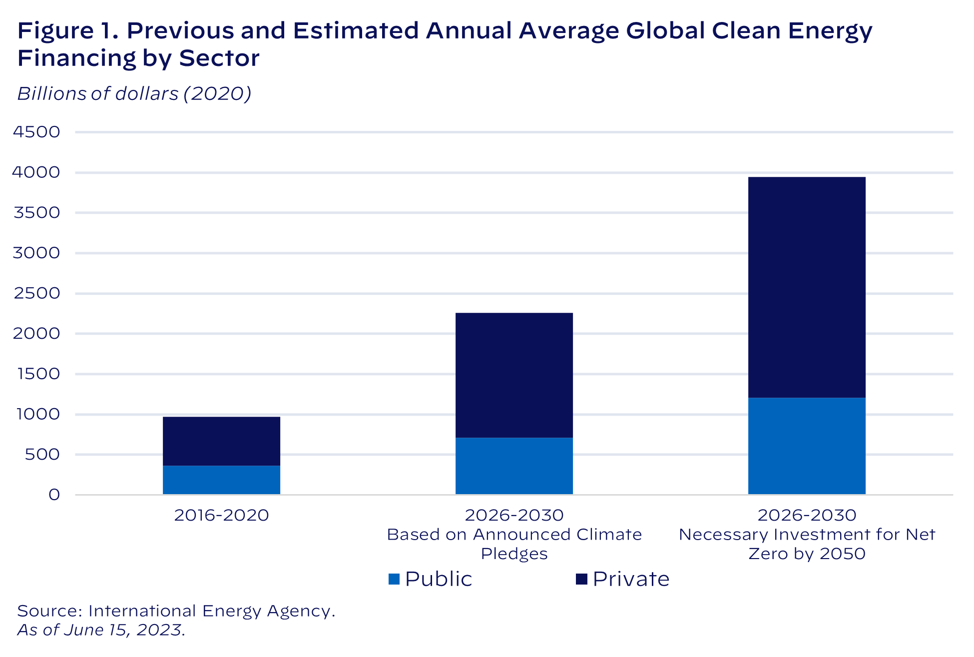 The President’s agenda has put the United States on a path to make historically large investments in these industries and the infrastructure that supports them. This represents only a fraction of the global total required to reach these goals. The IEA estimates that to globally reach Net Zero by 2050, 70 percent of global clean energy investments will likely need to come from the private sector—including from utility and energy companies, clean energy developers, and financing institutions like banks or venture capital (Figure 1).