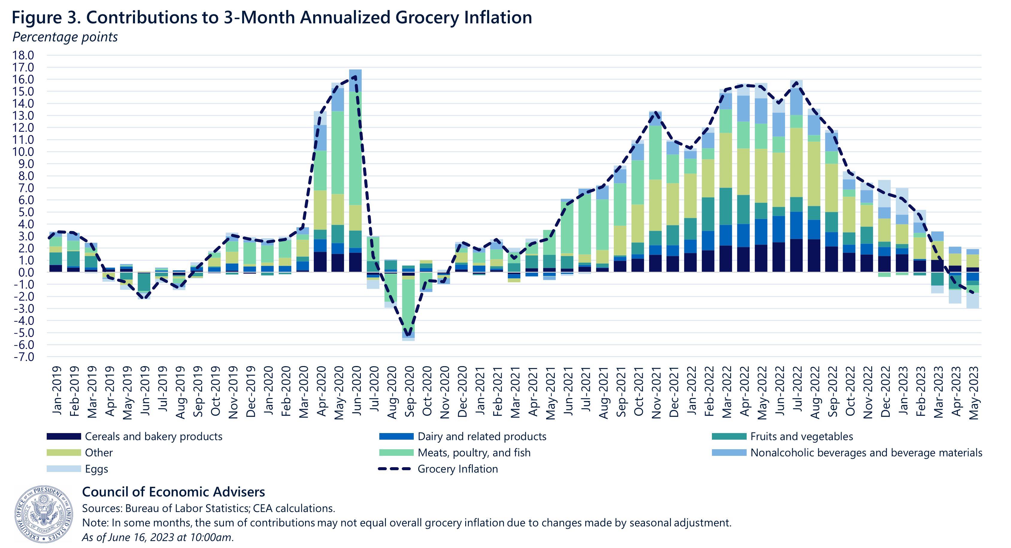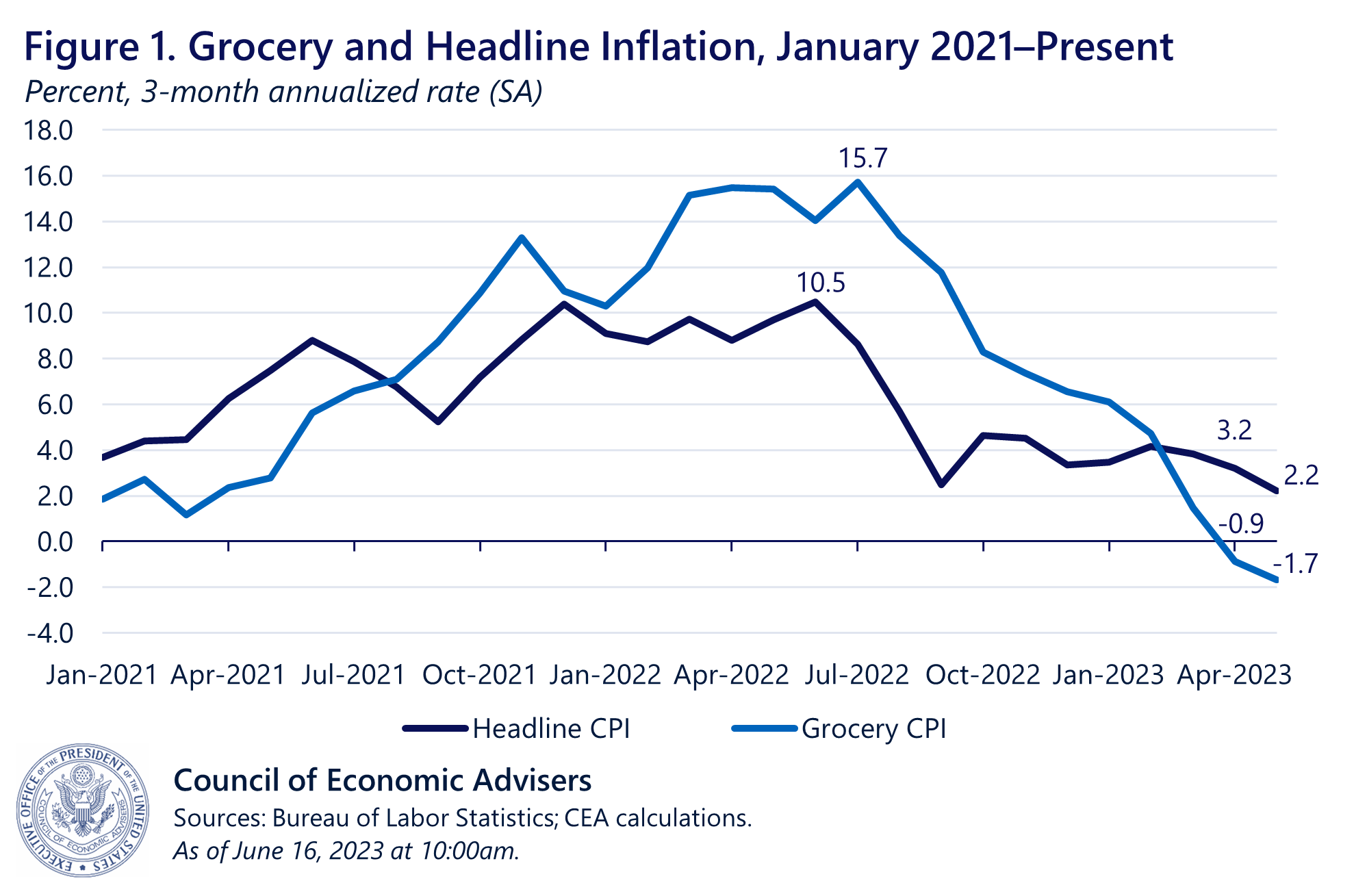 Looking ahead, the CEA staff expect grocery inflation to continue improving alongside headline inflation but remain elevated relative to its prepandemic levels through the rest of 2023.