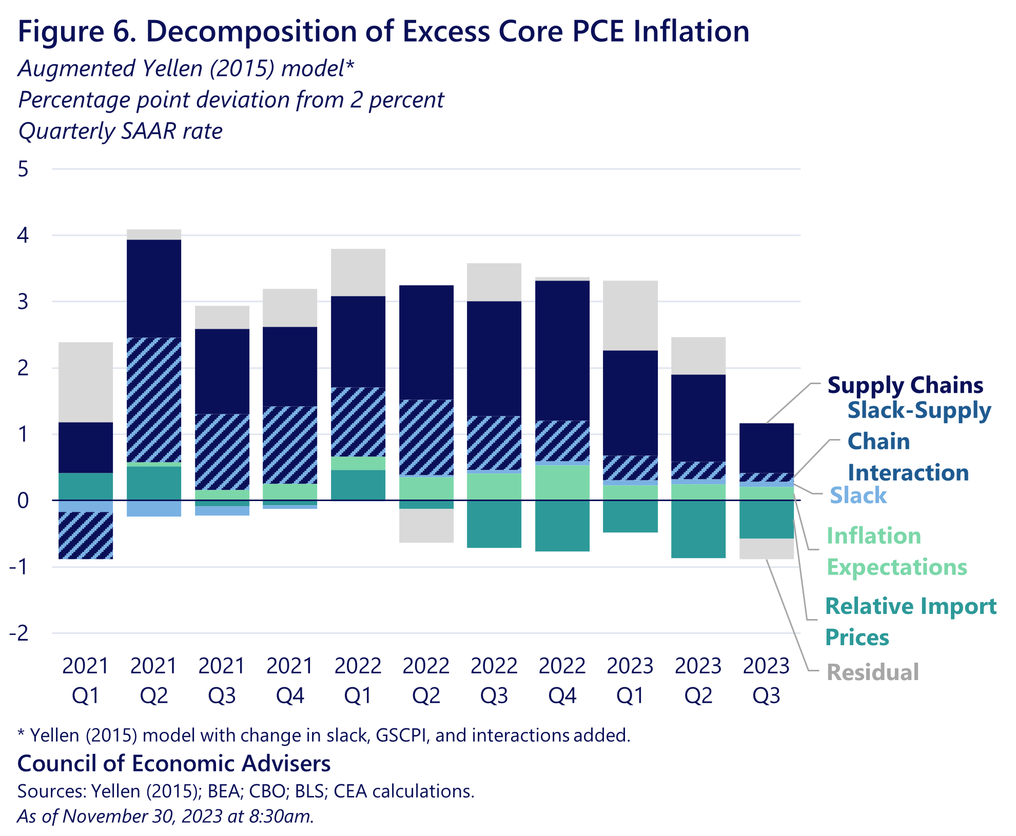 As CEA has highlighted, the rise and subsequent fall of inflation during the pandemic was overwhelmingly linked to supply-side forces, including the unsnarling of global supply chains and the rise in prime-age labor force participation. Our analysis finds that the unsnarling of supply chains, either by themselves or in tandem with cooling demand, explain 80 percent of the disinflation that has occurred thus far. In fact, one of the most important economic developments of the year was the achievement of significantly lower inflation without a substantial rise in the unemployment rate.