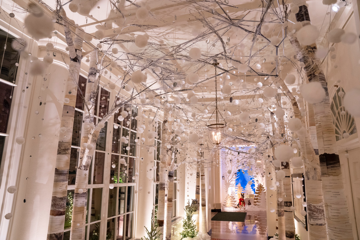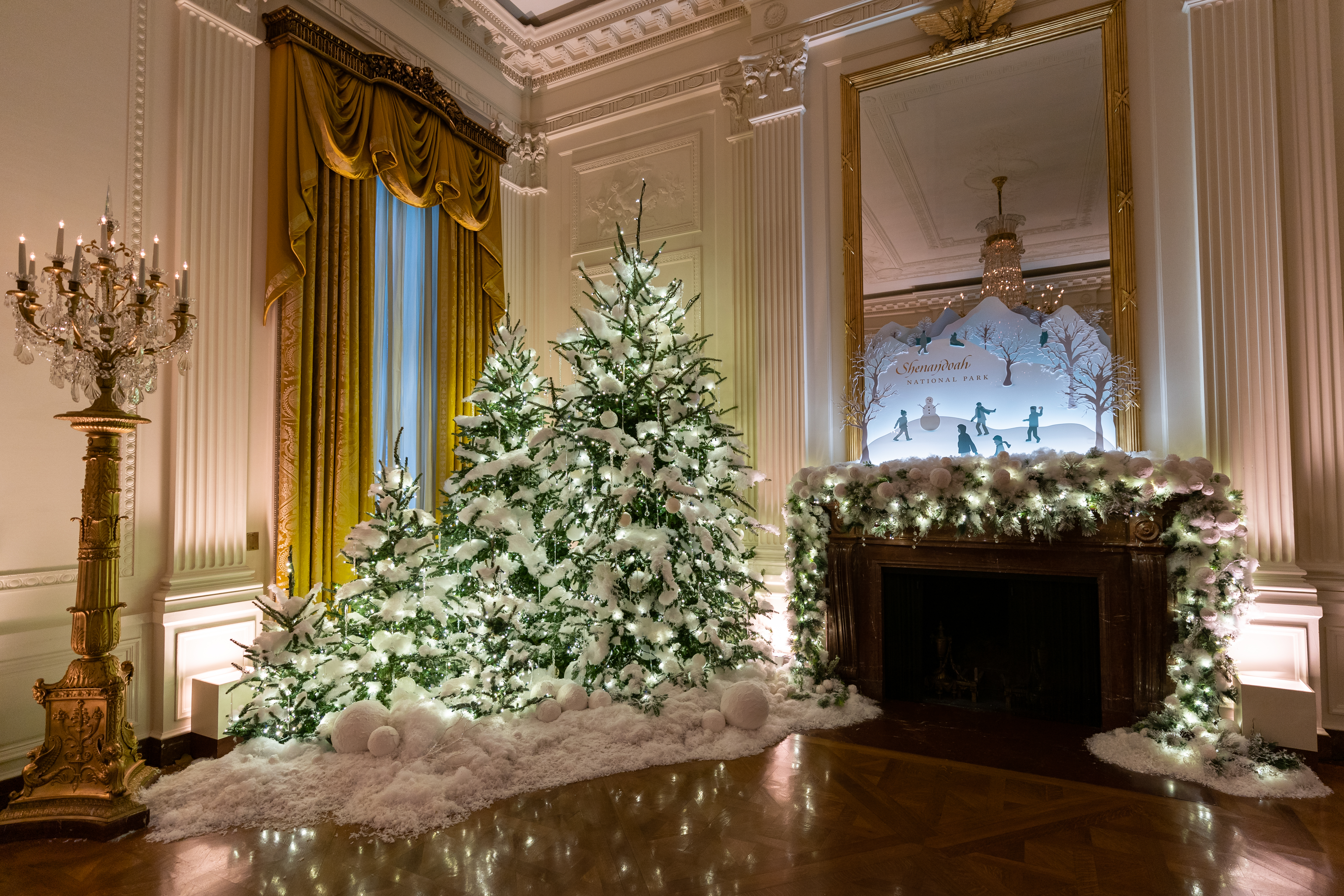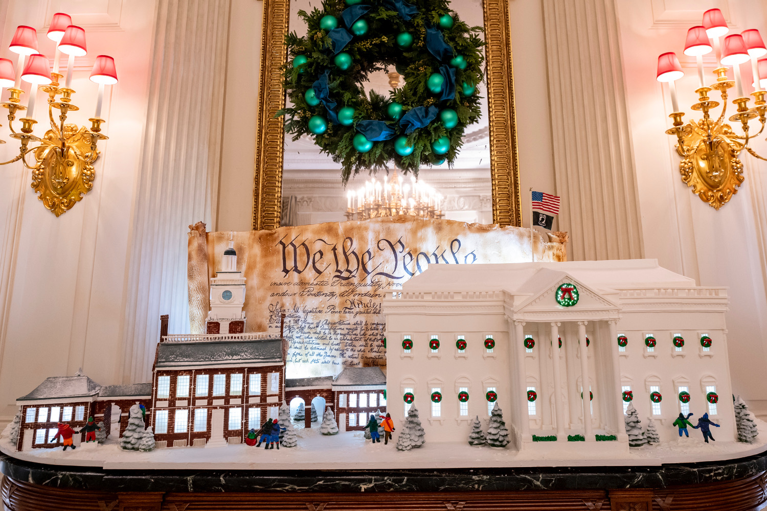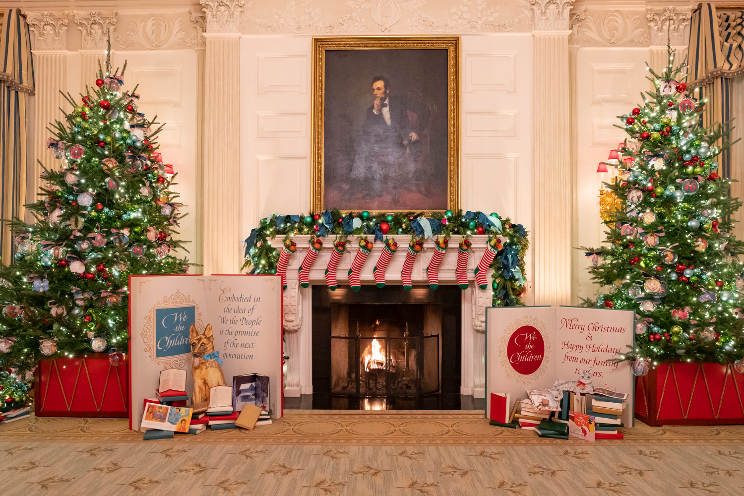 Estas palabras son la base de nuestro extraordinario país y el alma de nuestra nación. Durante esta temporada de fiestas, nos reunimos cada año en compañerismo y fe, recordando que somos más fuertes como comunidad. Cada salón y elemento de diseño en la decoración de las fiestas de la Casa Blanca representa lo que nos une durante esta temporada y durante todo el año.