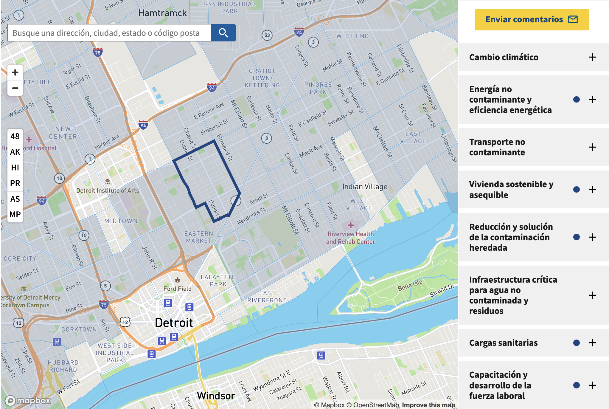 ¿Qué es la Herramienta de detección de justicia climática y económica? La Herramienta de detección de justicia climática y económica (CEJST) es una herramienta de mapeo geoespacial para identificar comunidades desfavorecidas que están marginadas, desatendidas y sobrecargadas por la contaminación. La CEJST presenta un mapa de búsqueda fácil de usar que identifica las comunidades desfavorecidas en los 50 estados, el Distrito de Columbia y los territorios de los Estados Unidos, en la medida en que los datos de los territorios estén disponibles. Al ayudar a las agencias federales a identificar comunidades desfavorecidas, la CEJST busca cumplir la promesa de la Iniciativa Justice40. La CEJST fue desarrollada con propósitos de asignación de recursos federales en mente.