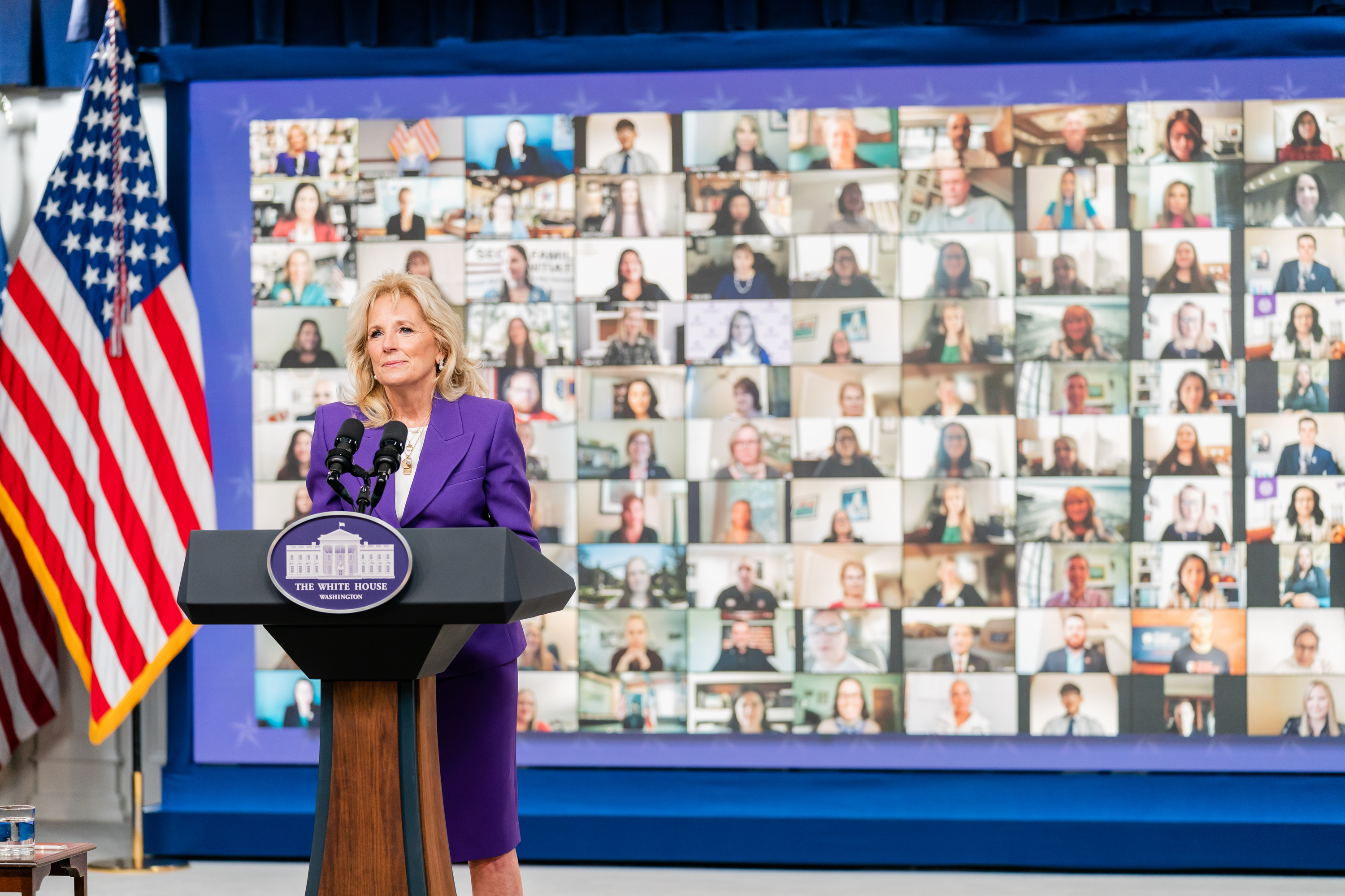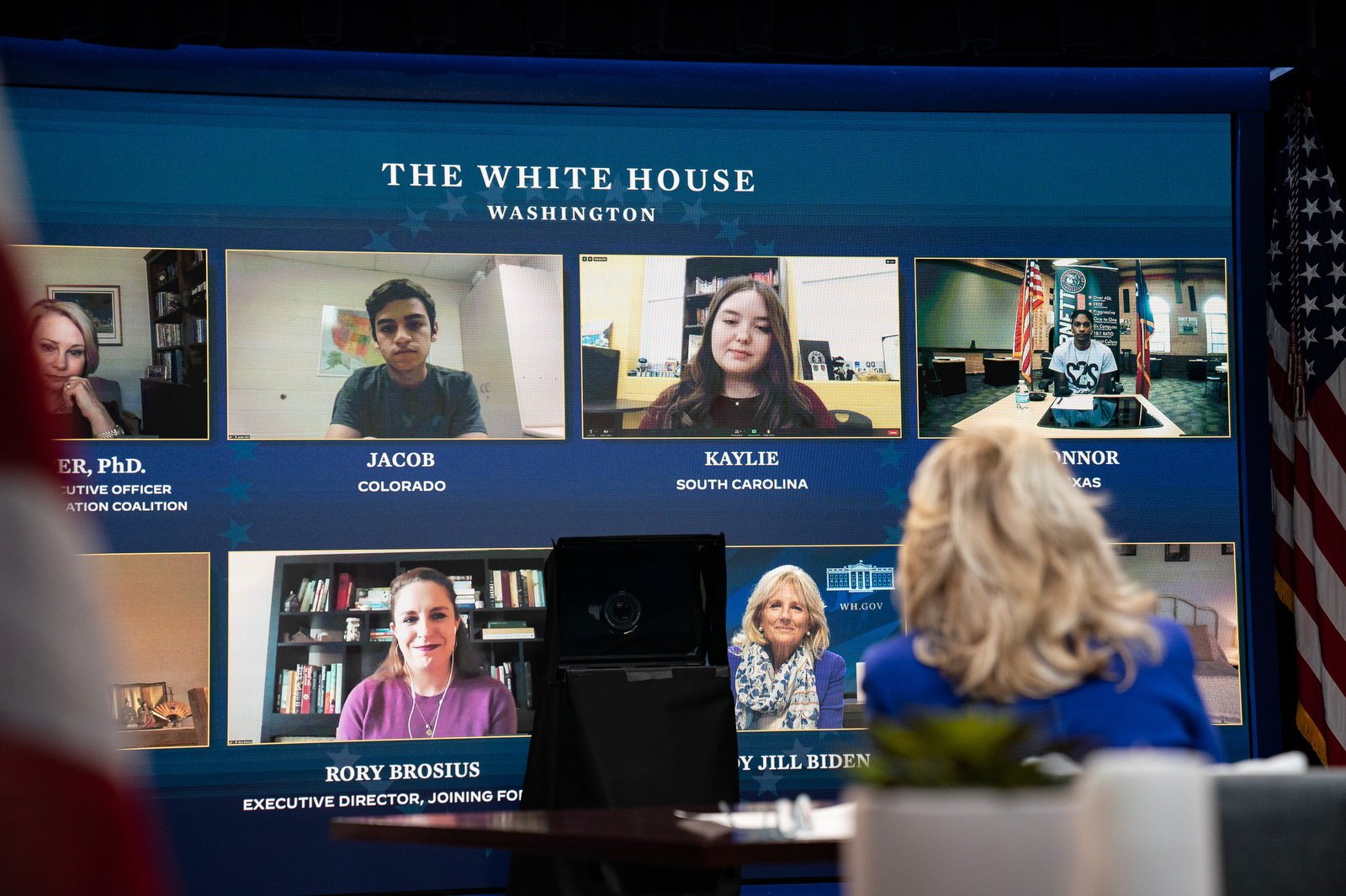 As part of her Joining Forces initiative, First Lady Jill Biden participates in a virtual conversation with military-connected students.