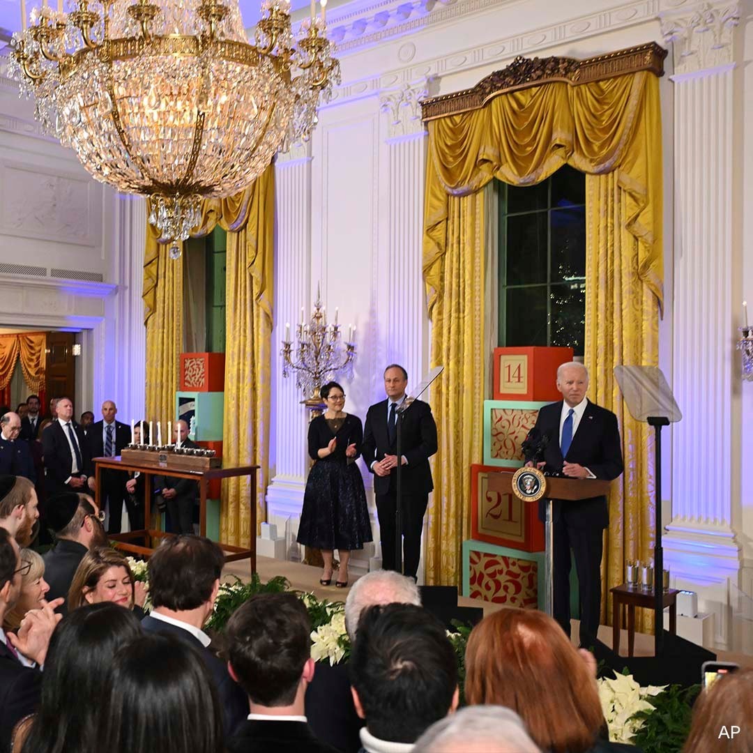 President Joe Biden and First Lady Jill Biden host a Hanukkah reception at the White House.