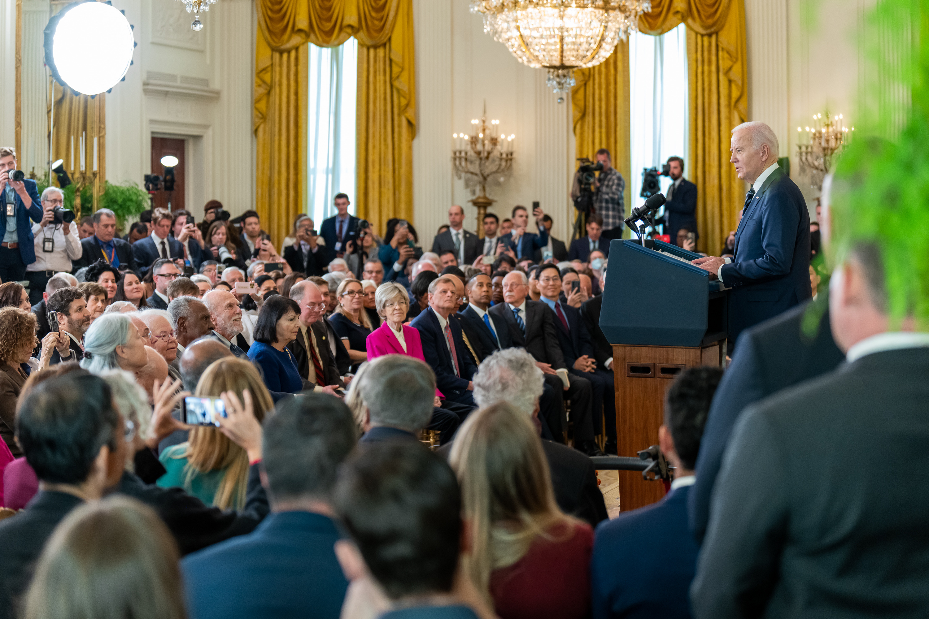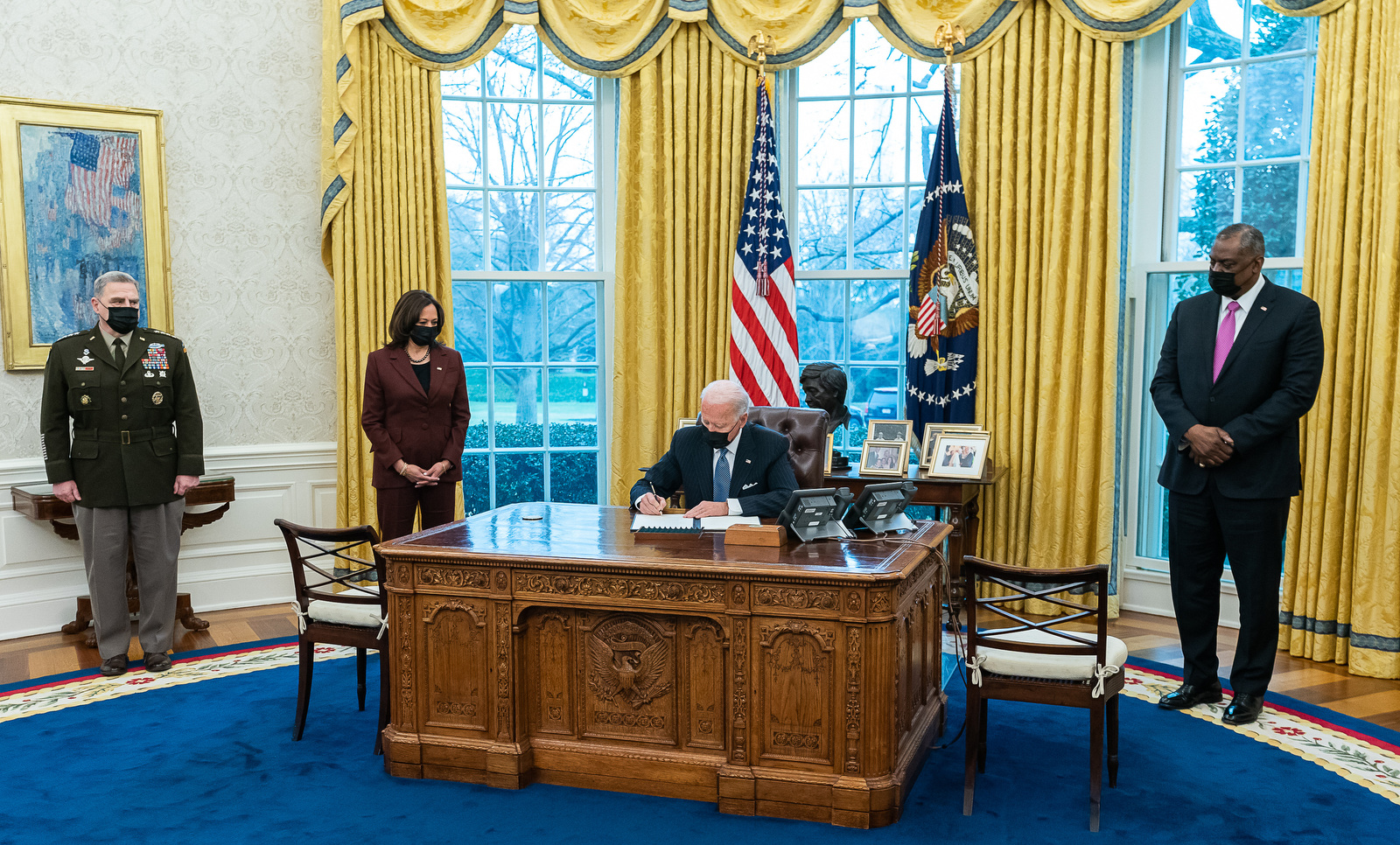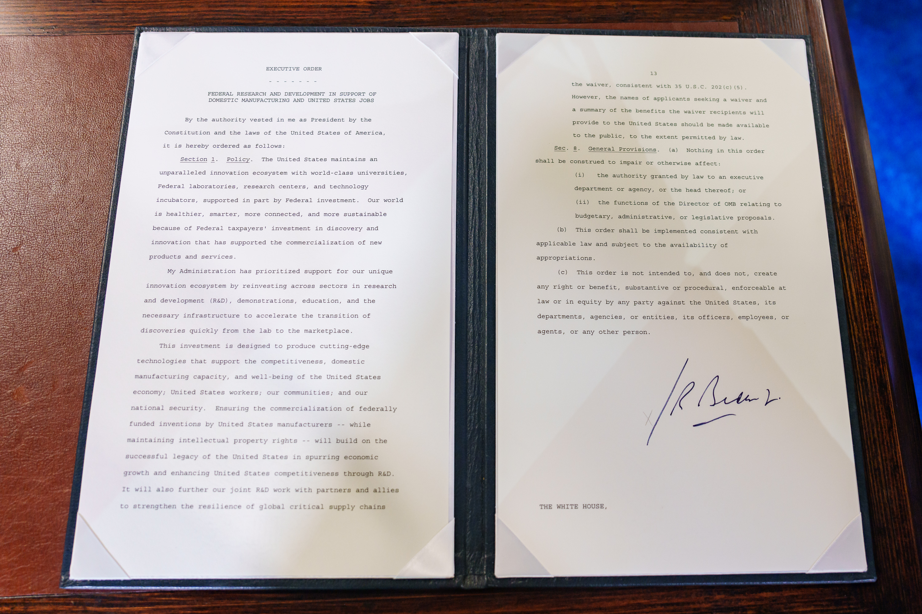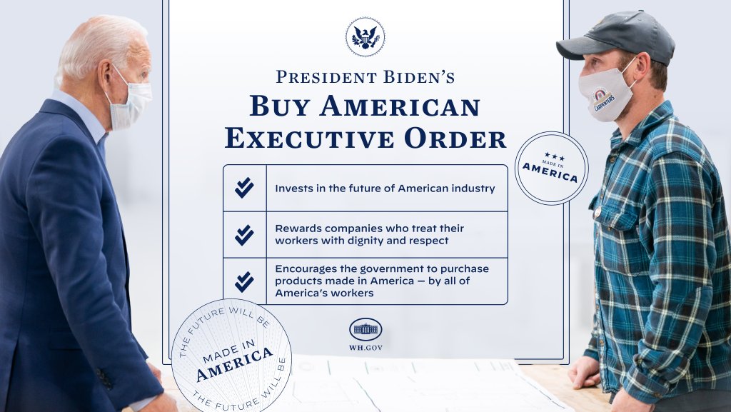 President Joe Biden issues the Executive Order on Ensuring the Future Is Made in All of America by All of America’s Workers, an EO to invest in the future of the American industry by supporting American workers.