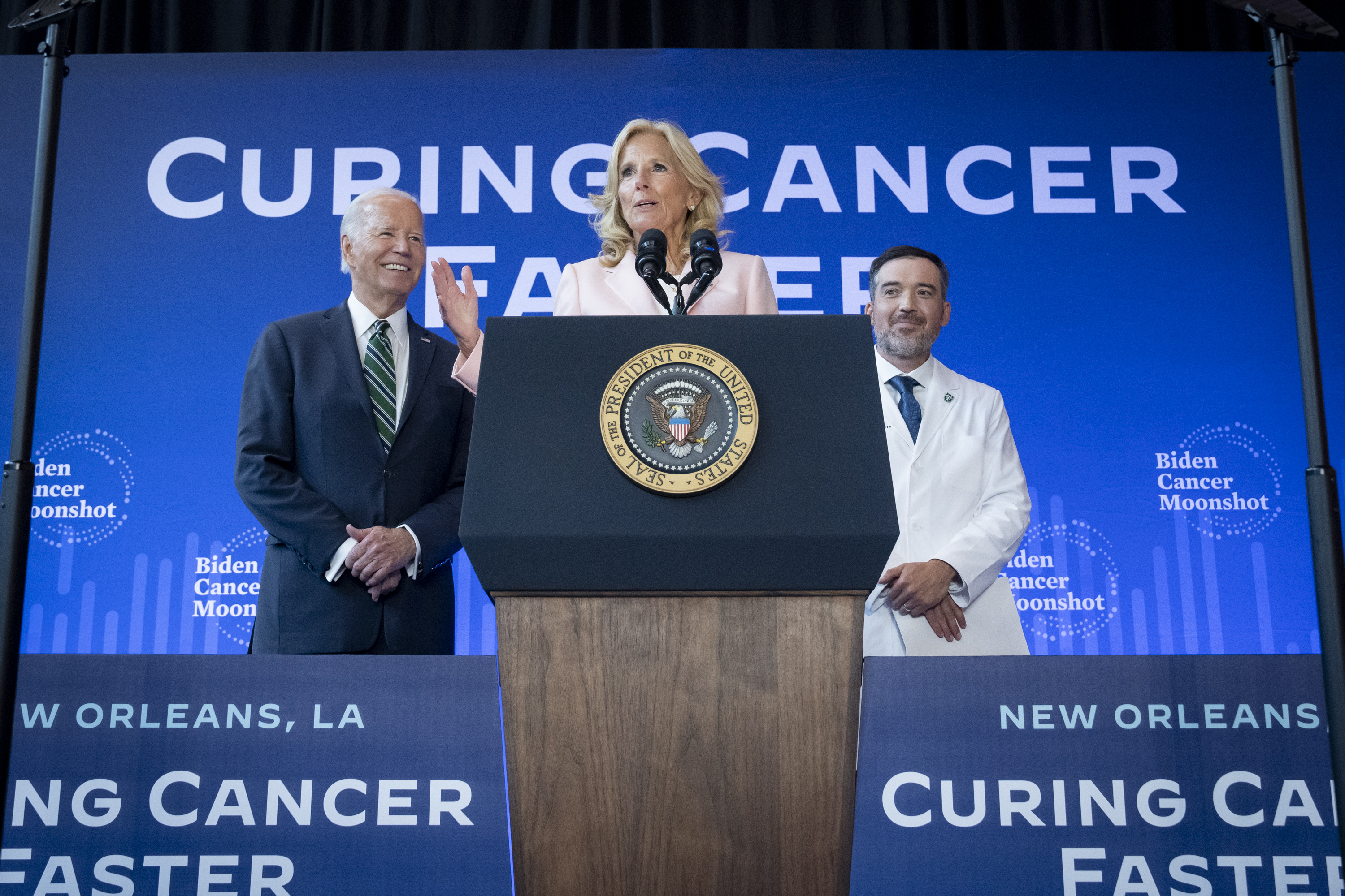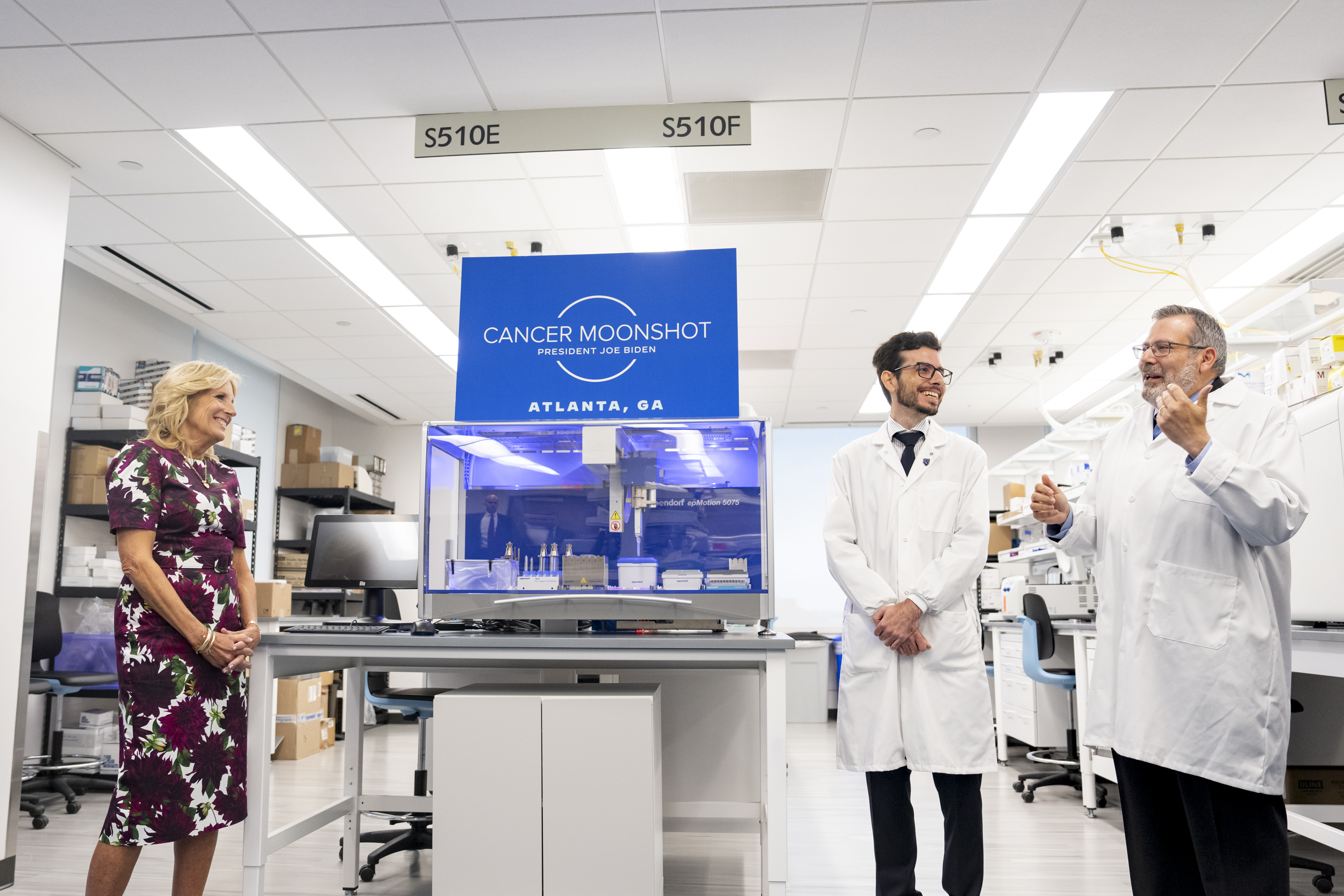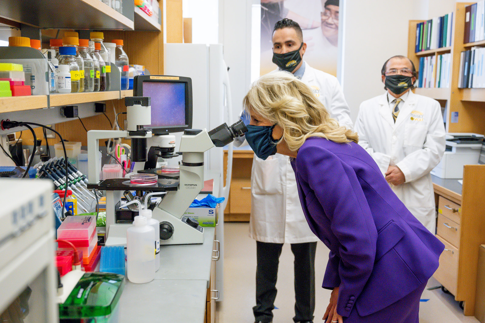 First Lady Jill Biden visits Massey Cancer Center at Virginia Commonwealth University in Richmond, Virginia to learn how they are addressing disparities in cancer research.