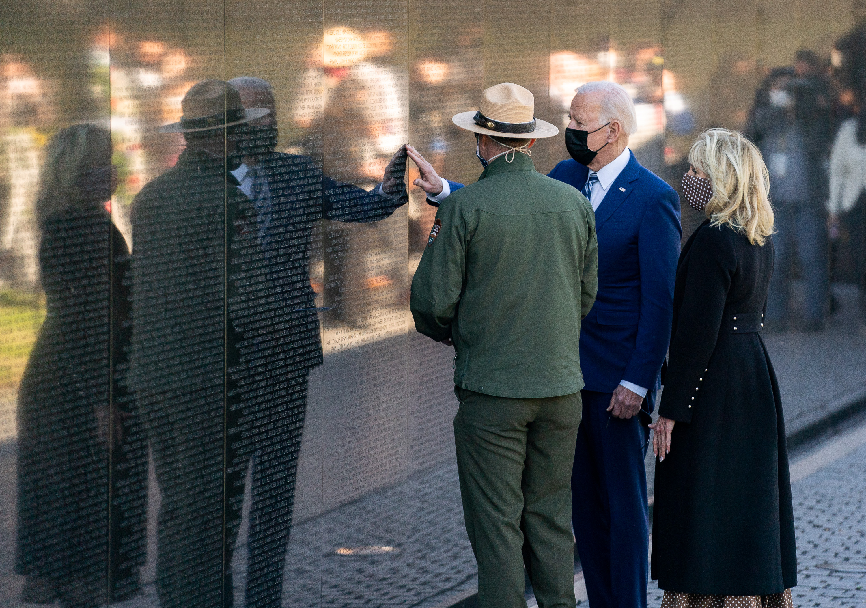 President Biden and First Lady Jill Biden visit the Vietnam War Memorial in Washington, D.C.