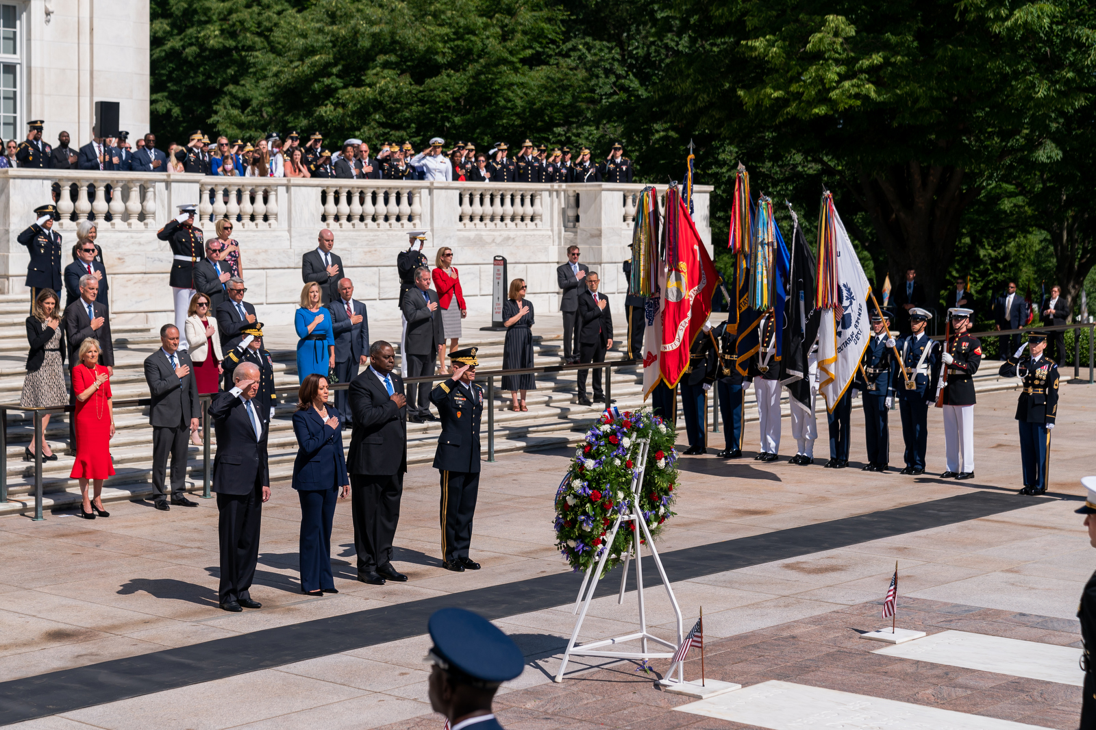 The President, First Lady, Vice President, and Second Gentleman honor fallen servicemembers during Memorial Day at Arlington Cemetery.