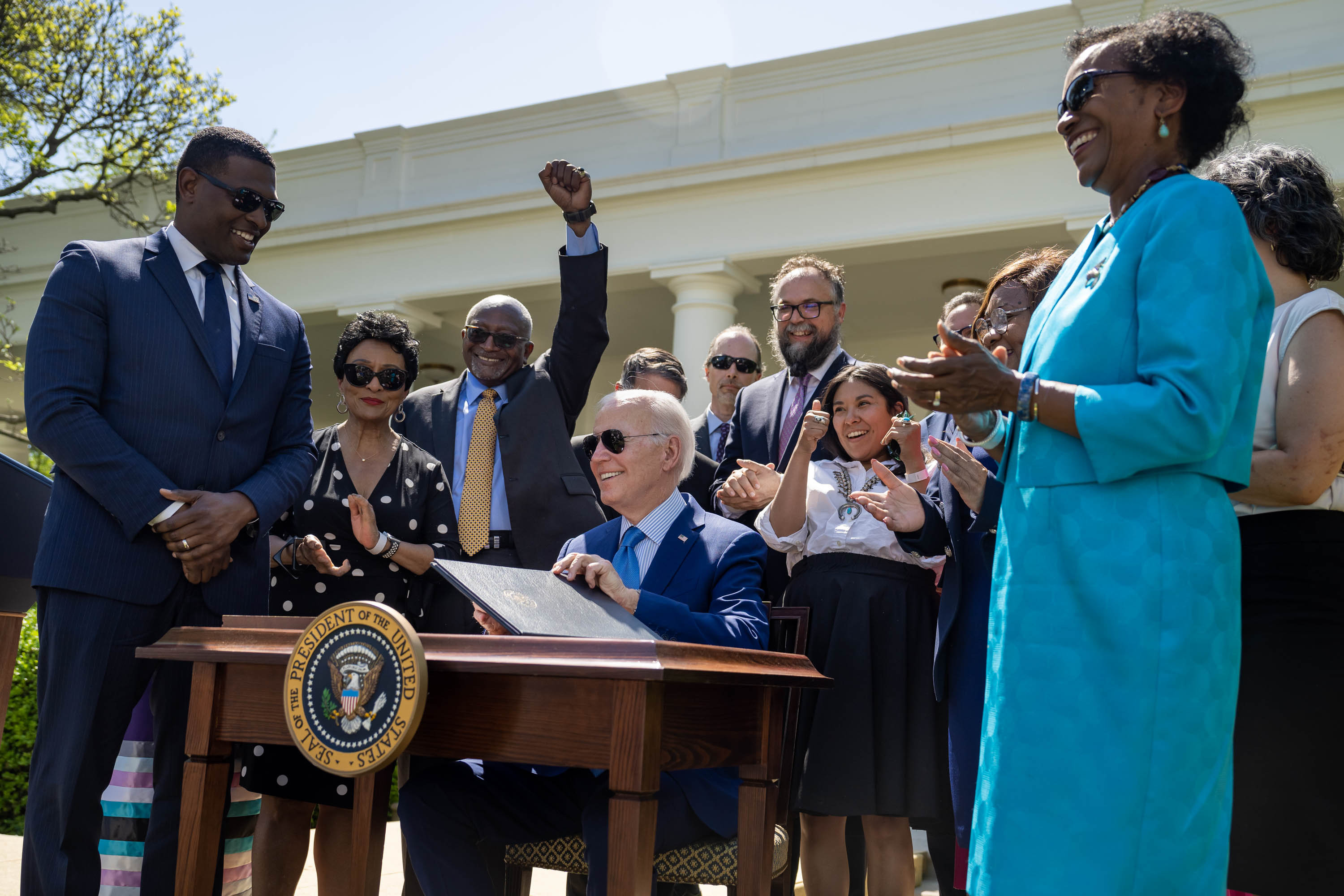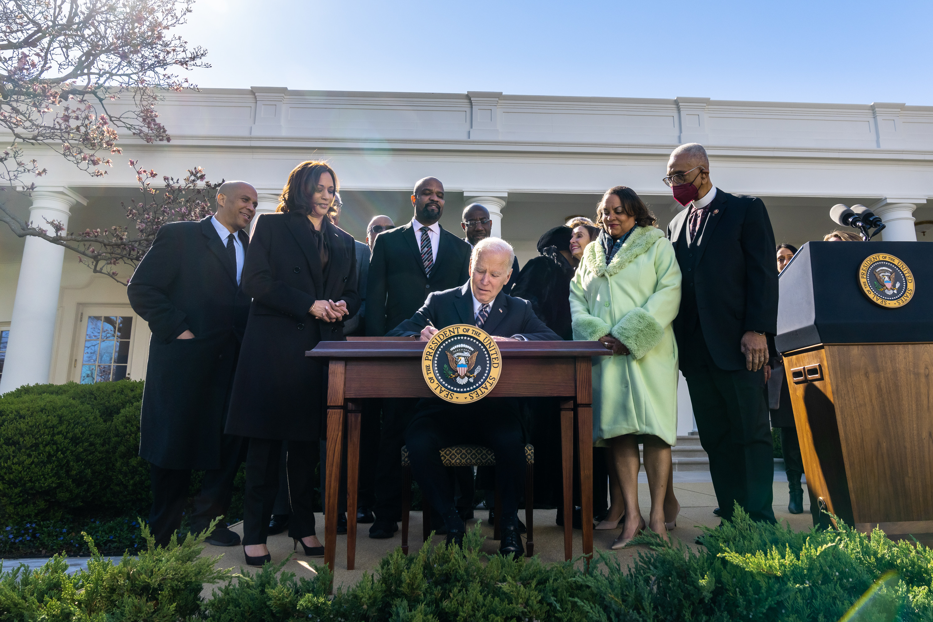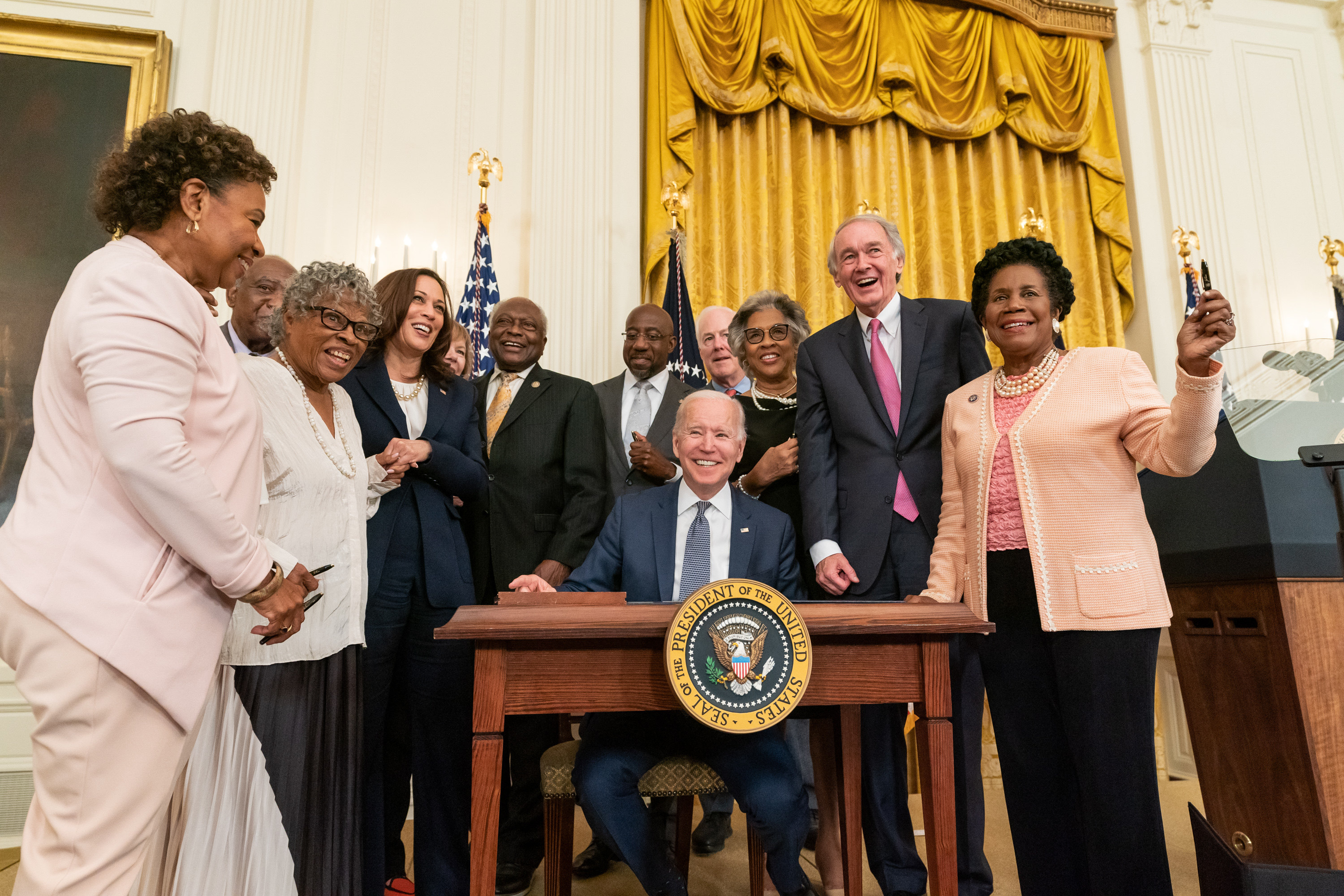 President Joe Biden signs the Juneteenth National Independence Day Act Bill.