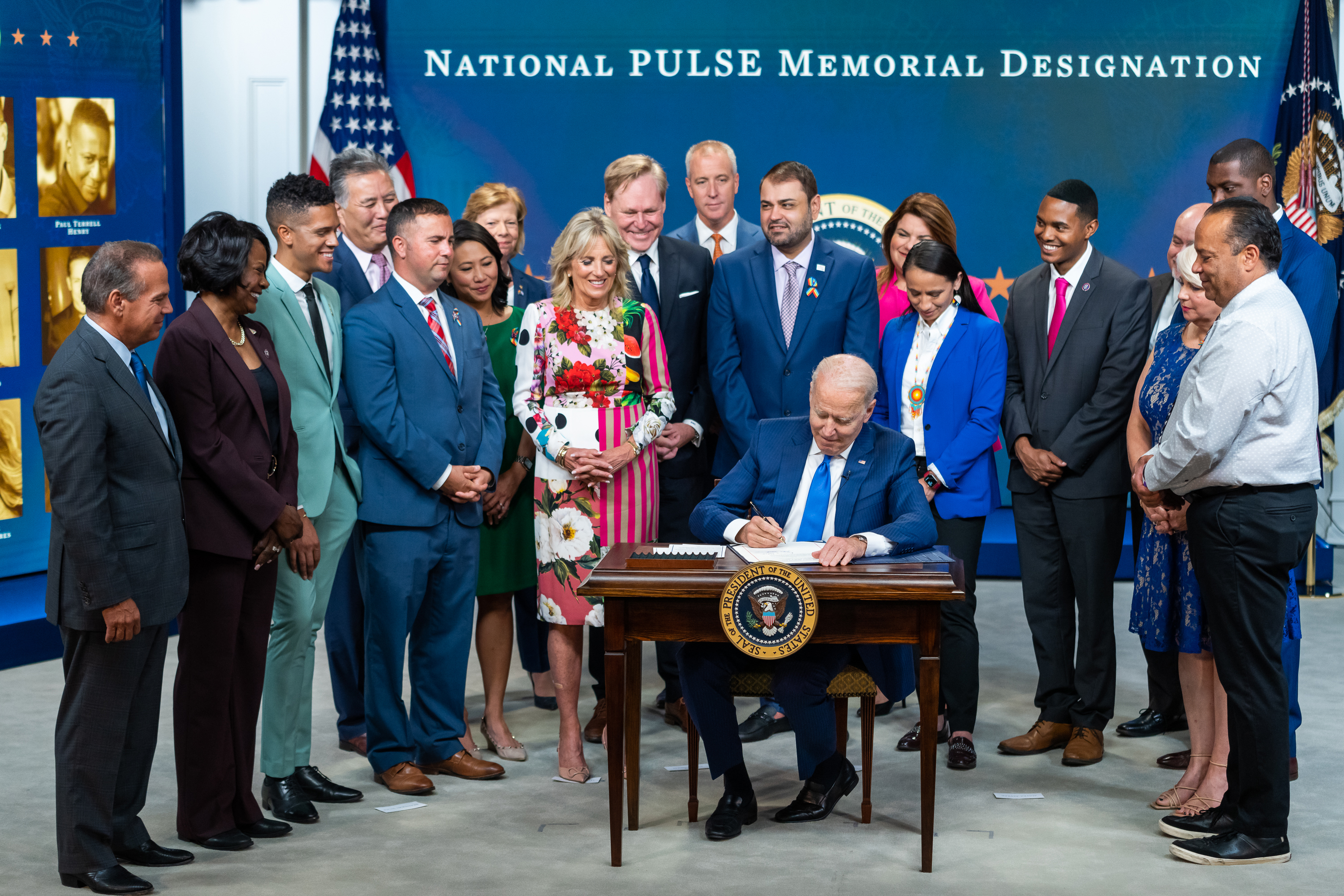 President Joe Biden signs a bill creating the National Pulse Memorial to honor the 2016 mass shooting victims at the Pulse nightclub.