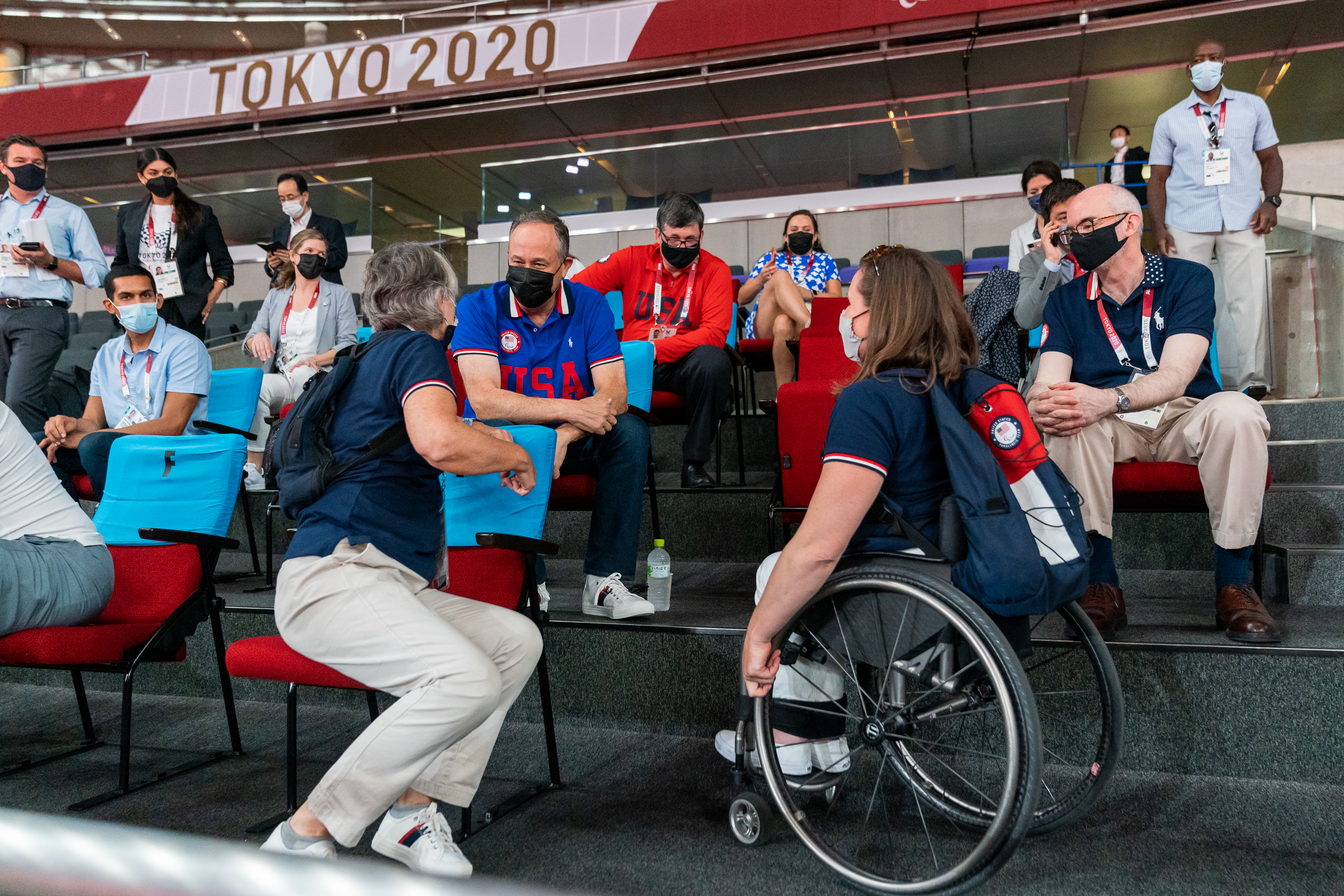 First Lady Jill Biden meets with patients as they prepare to receive the COVID-19 vaccine at First Choice Community Health Center in Albuquerque, New Mexico.
