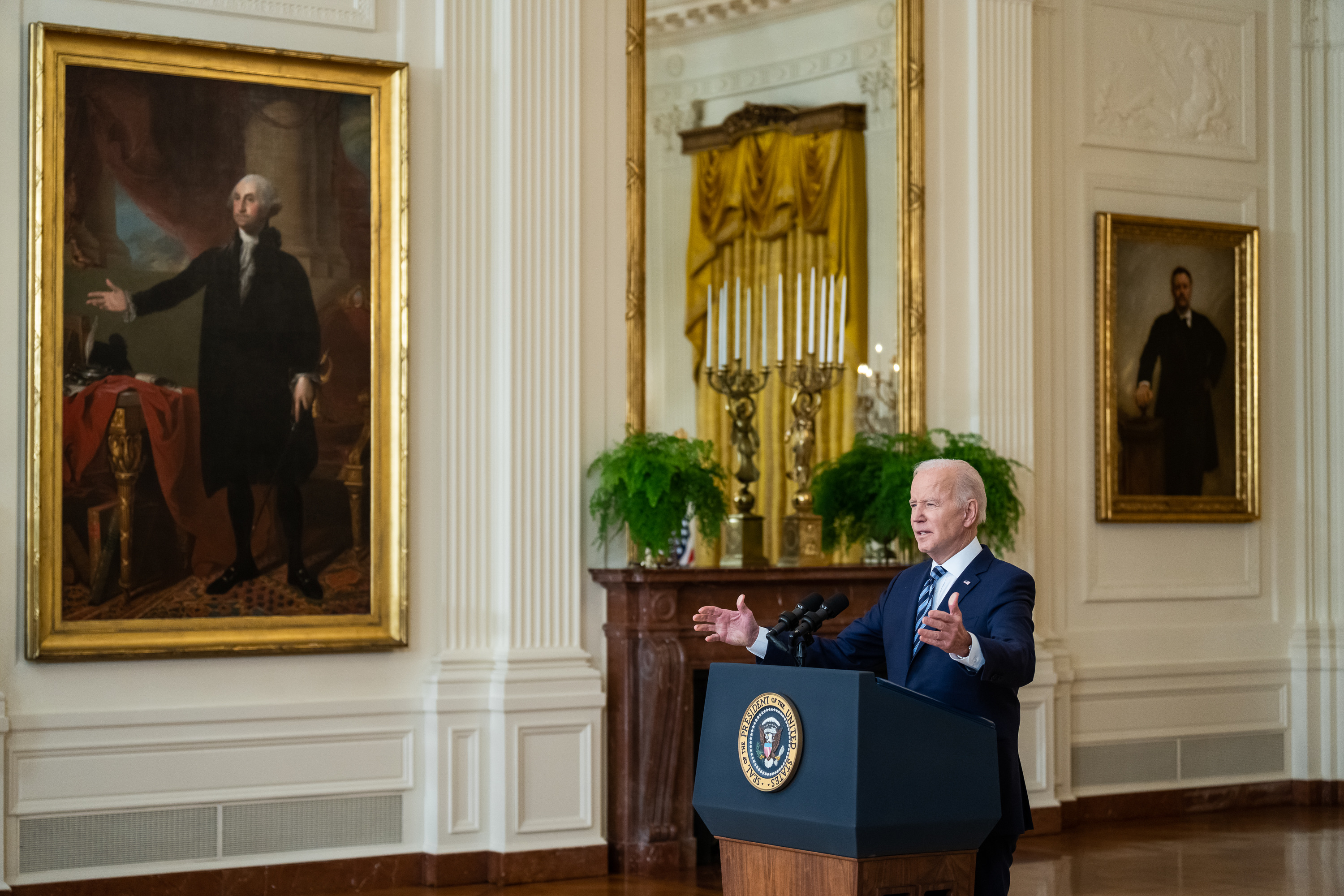 President Joe Biden delivers remarks officially announcing the drawdown of all 2,500 U.S. troops in Afghanistan, ending America’s longest war after 20 years.