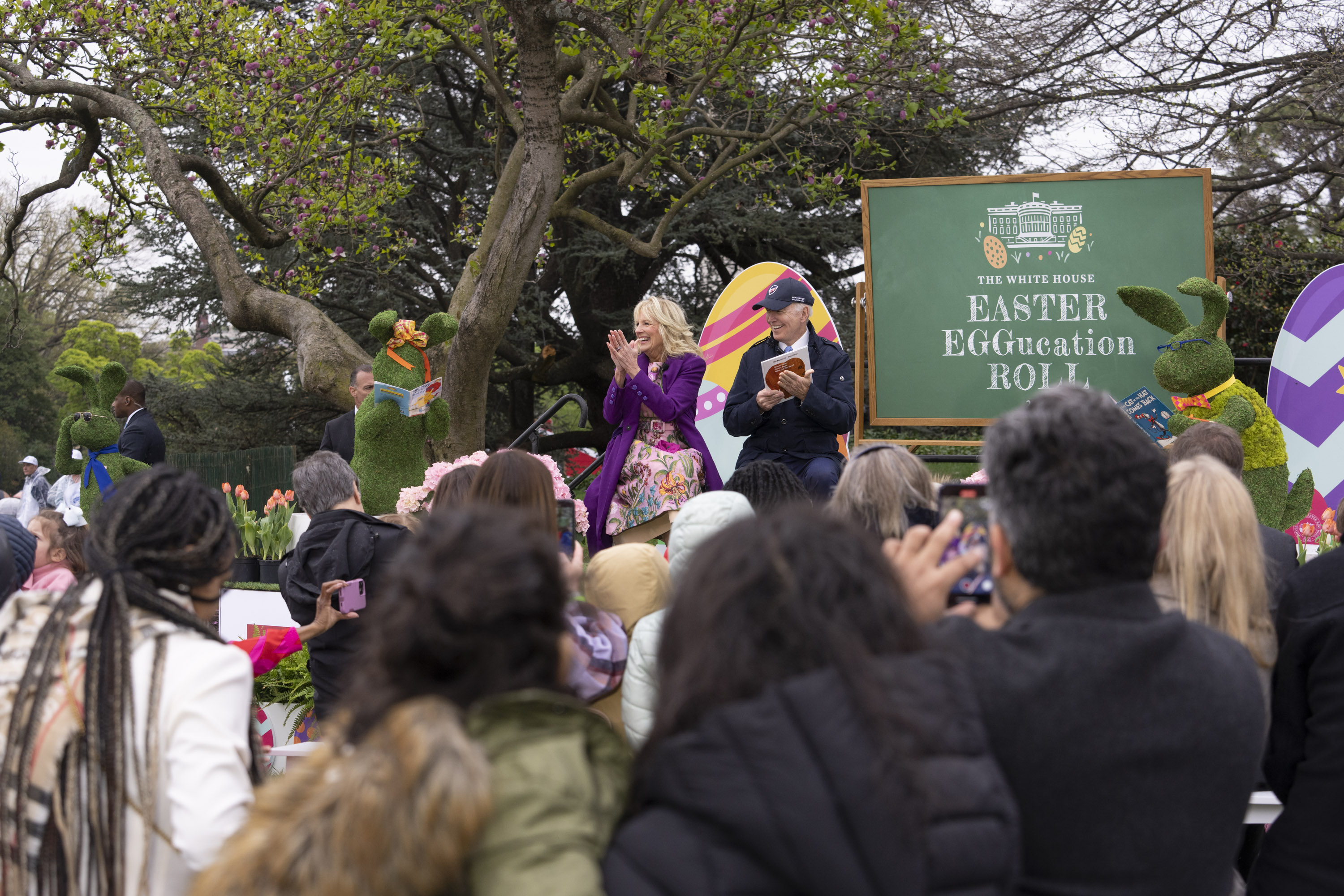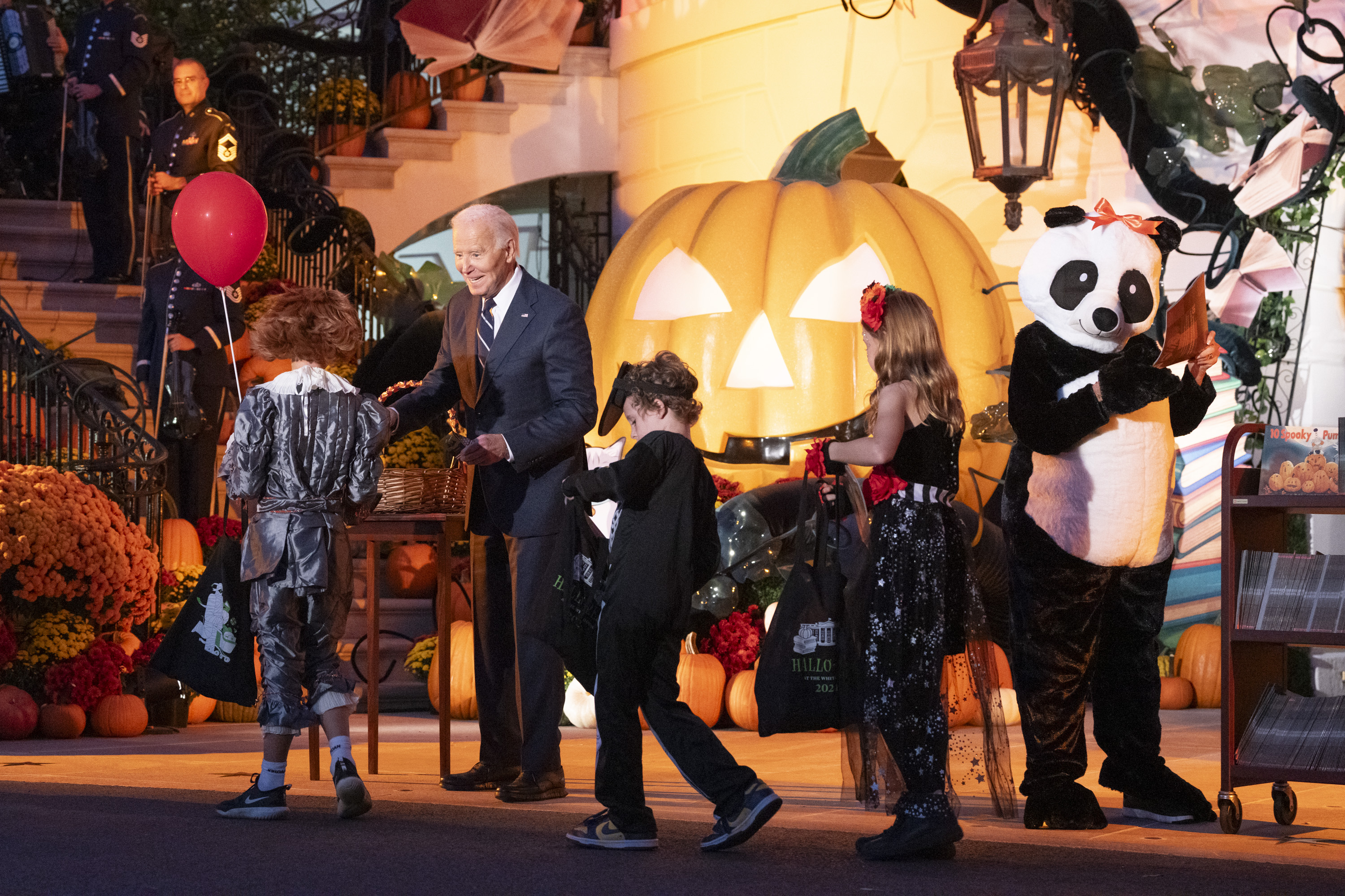 President Joe Biden and First Lady Jill Biden celebrate Hallo-READ with trick-or-treaters at the White House.