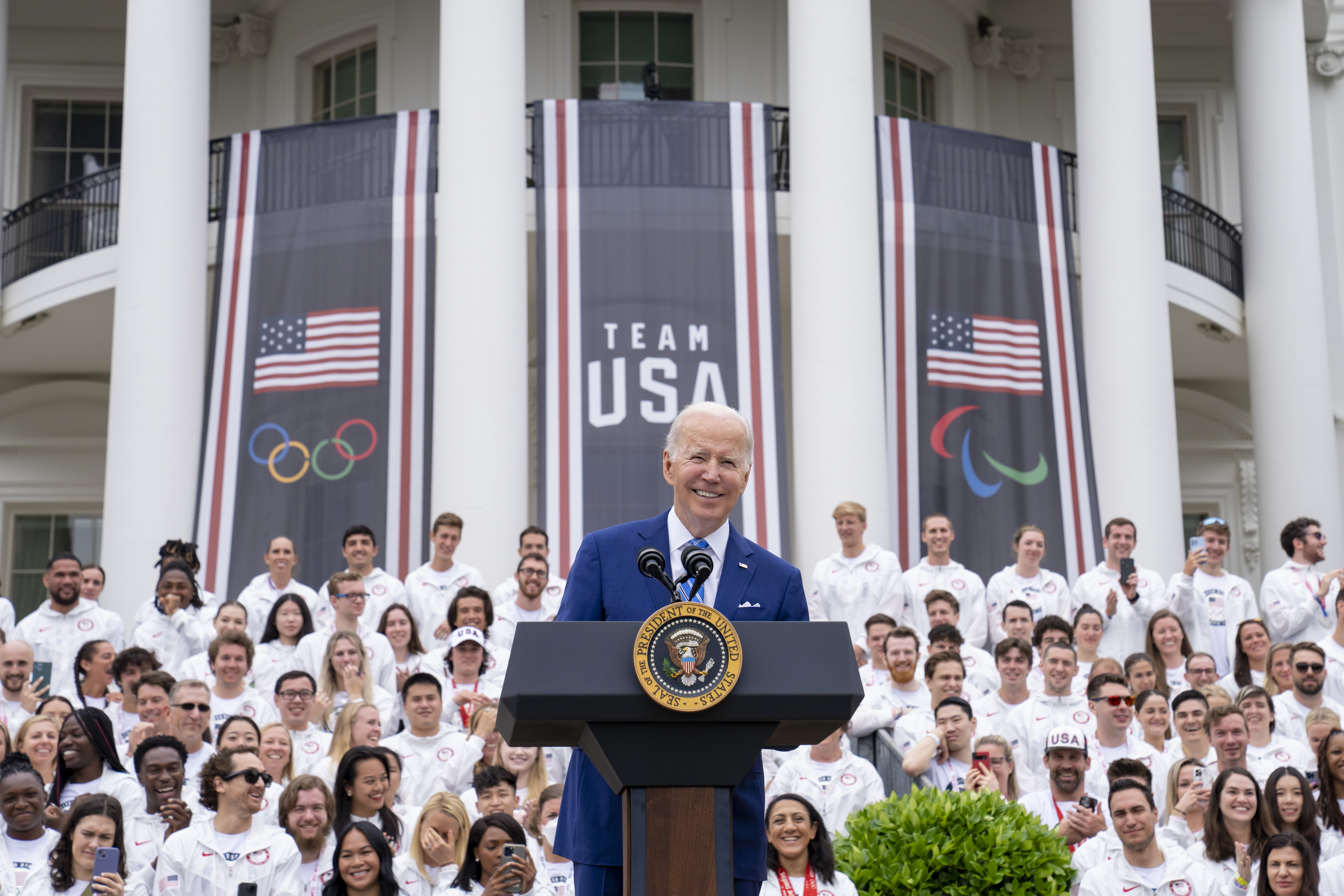 President Joe Biden and First Lady Jill Biden host the U.S. Women’s National soccer team for an event for Equal Pay Day