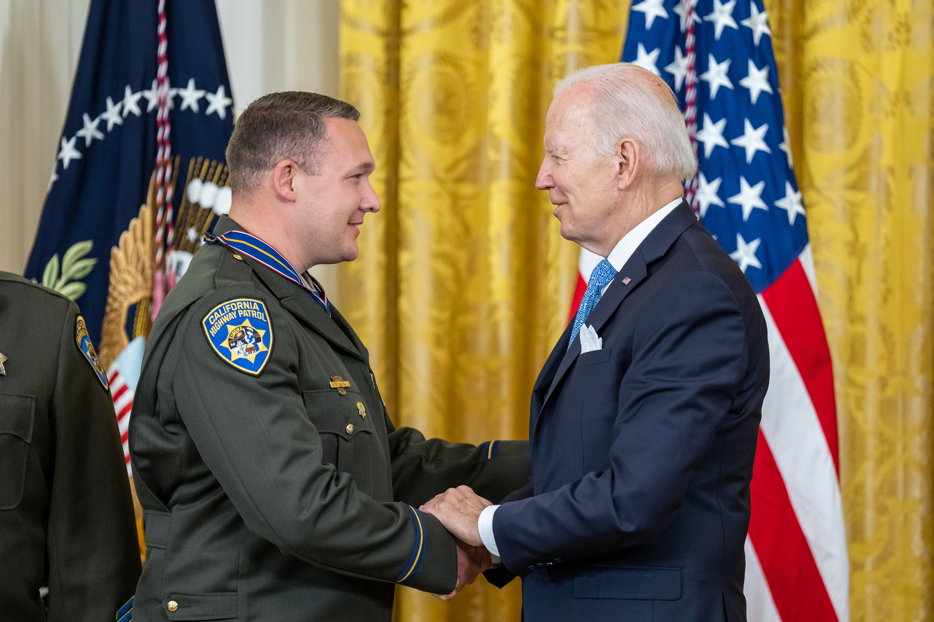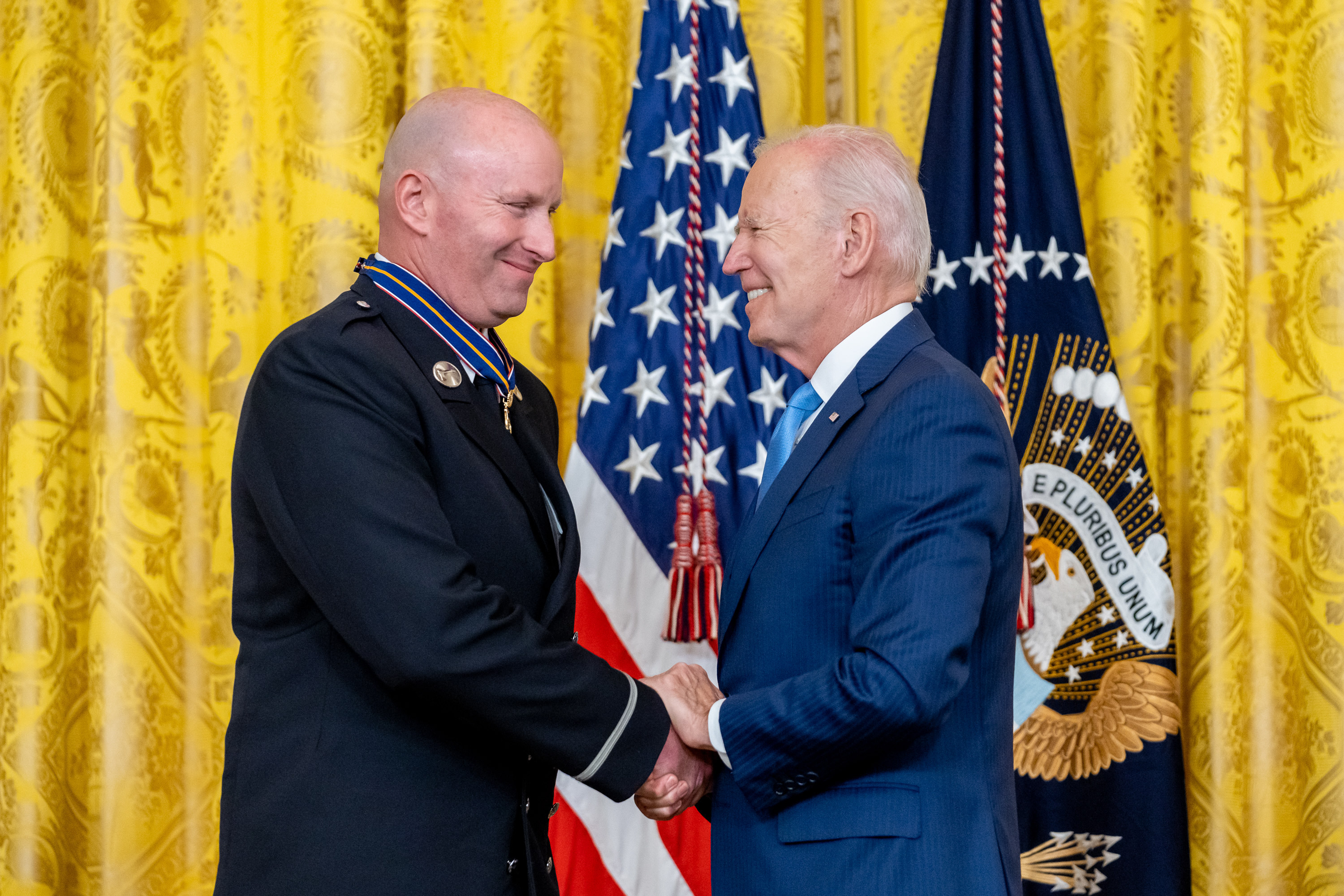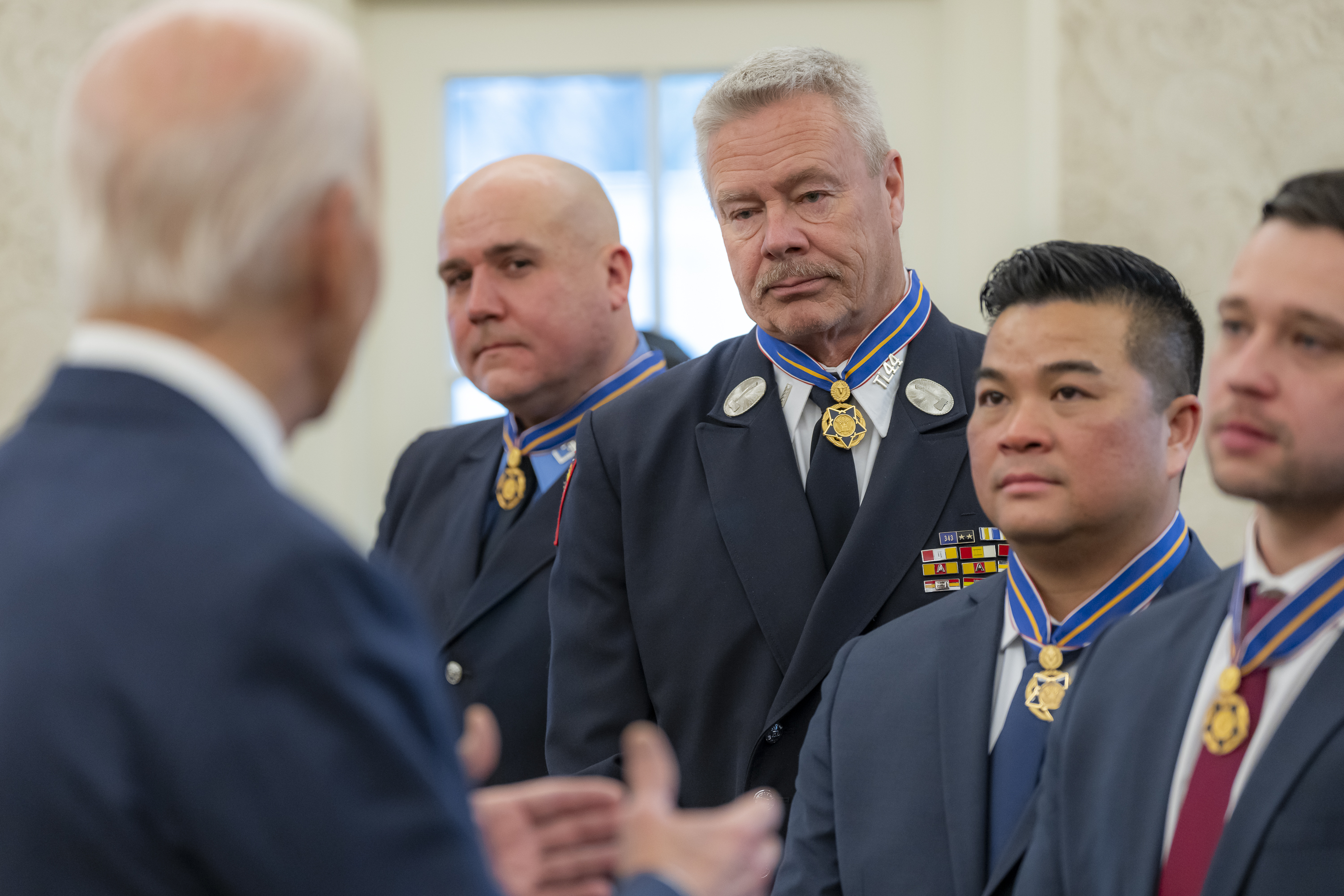 President Joe Biden awards the Medal of Valor to eight brave Americans.