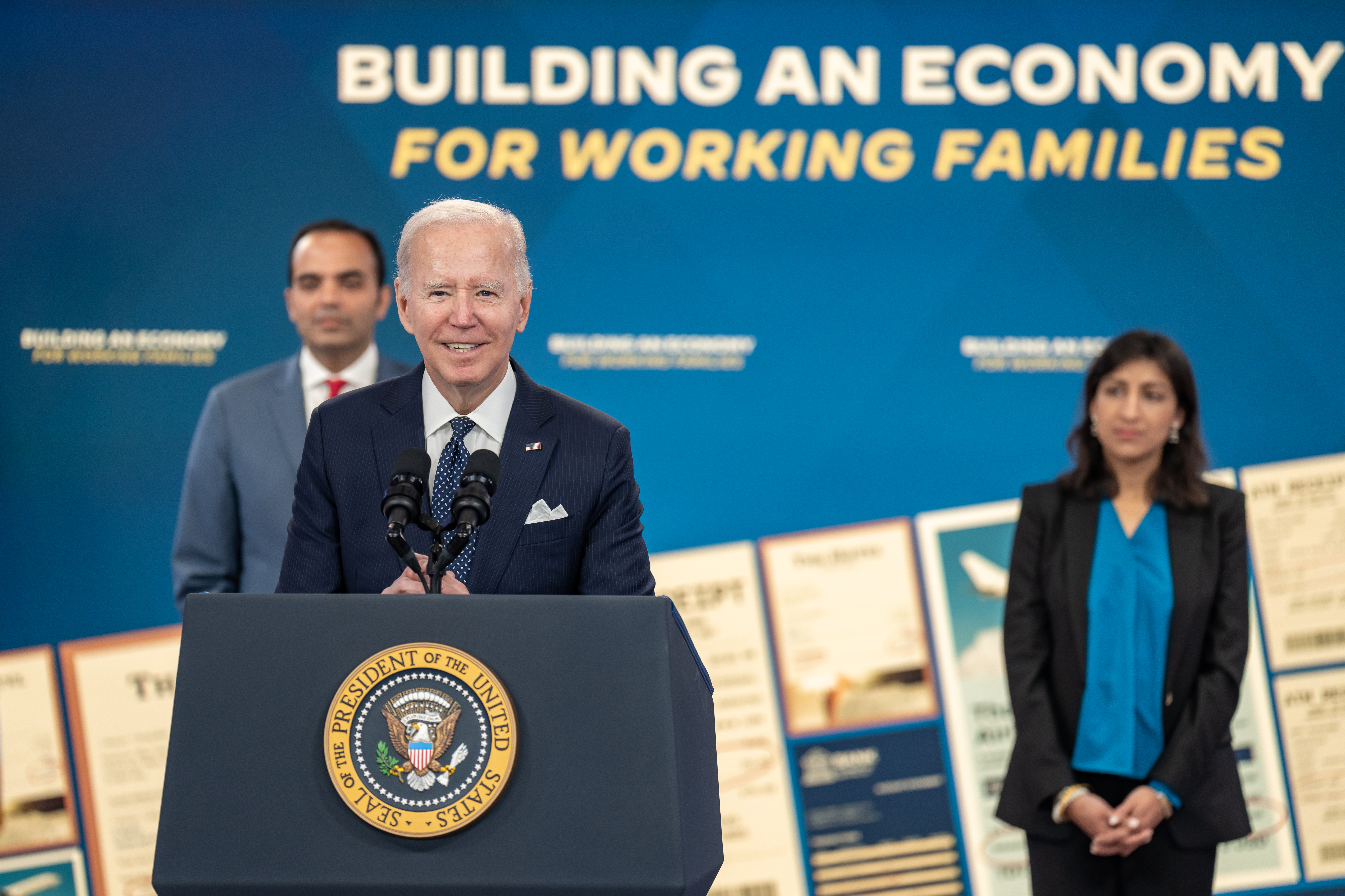 When President Joe Biden took office, he inherited an economy in crisis and millions of Americans out of work. He signed immediate relief to extend the moratorium on evictions, increase support for small businesses, expand food support, and extend the pause on student loan payments.