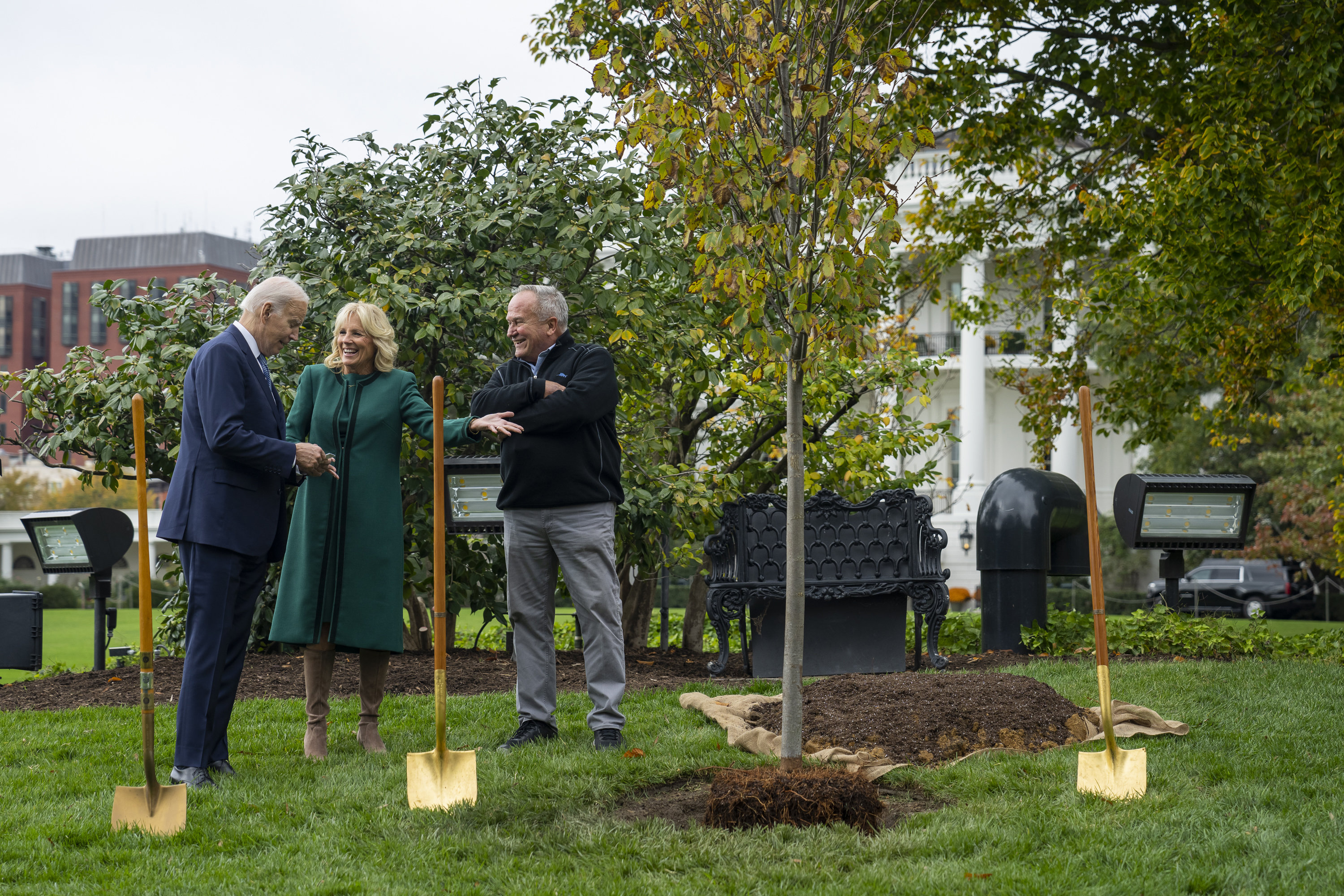 President Biden and First Lady Jill Biden visit the AIDS Memorial Quilt on the South Lawn of the White House in honor of World AIDS Day.