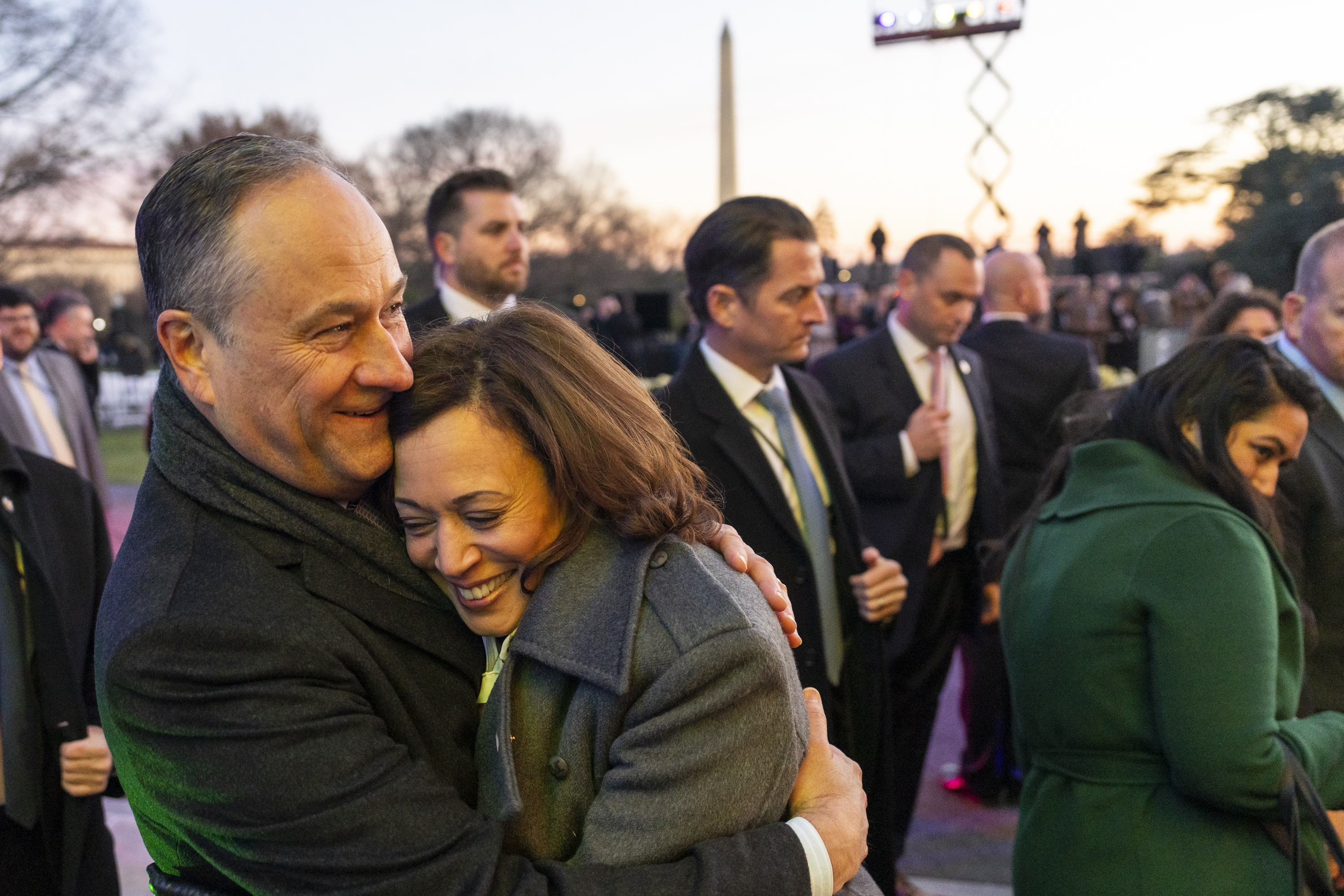 President Joe Biden, Vice President Kamala Harris, First Lady Jill Biden, Second Gentleman Douglas Emhoff gather on the North Portico for the final time.