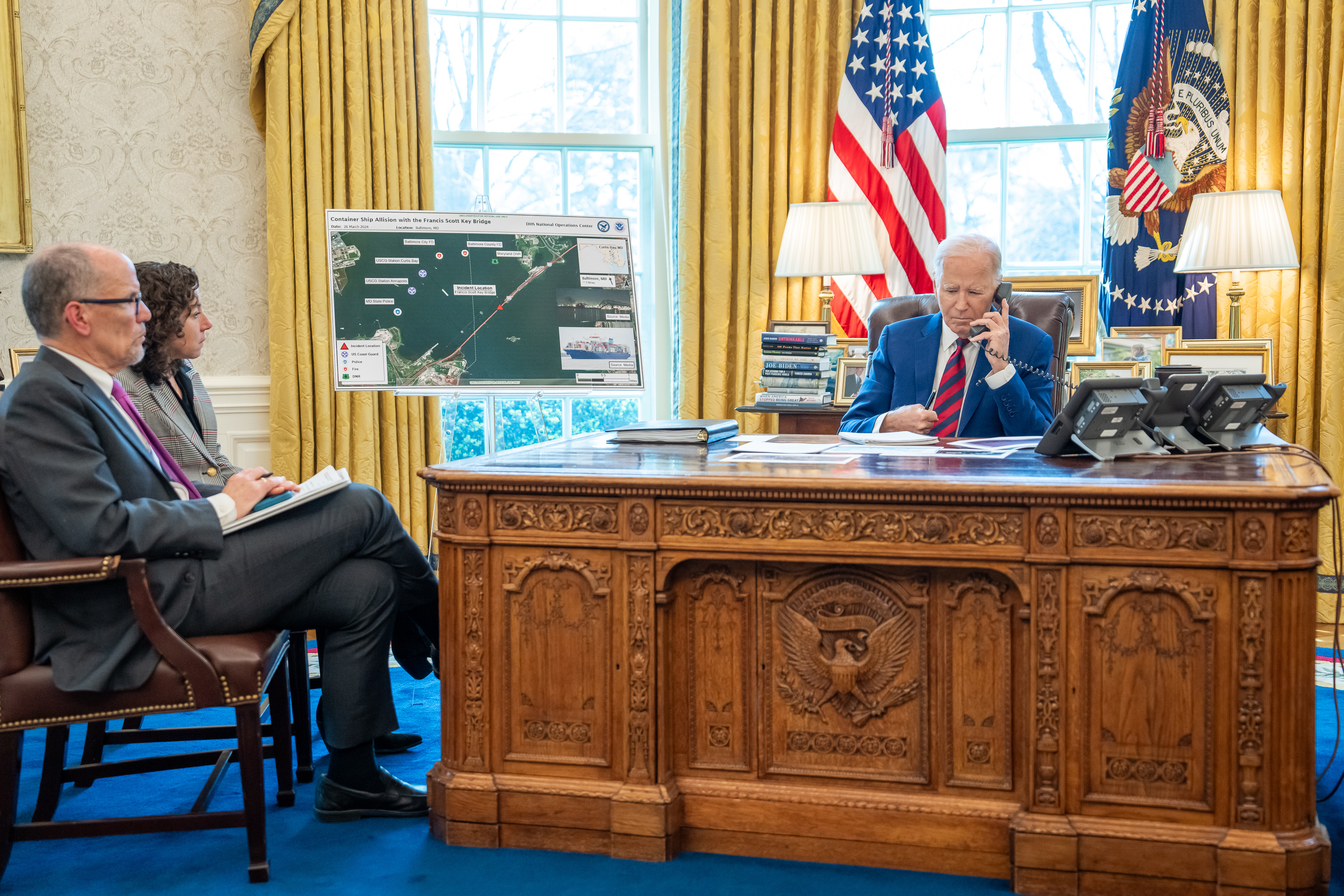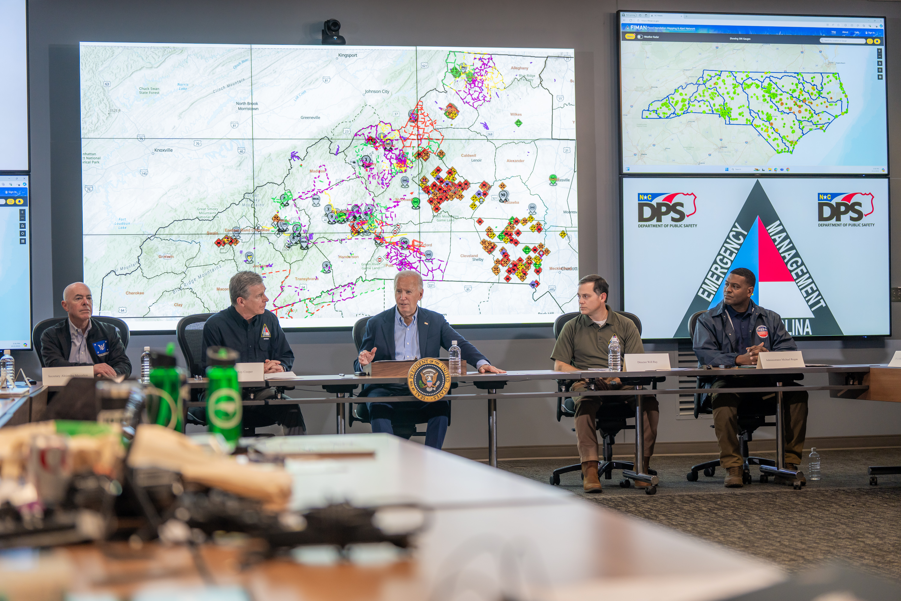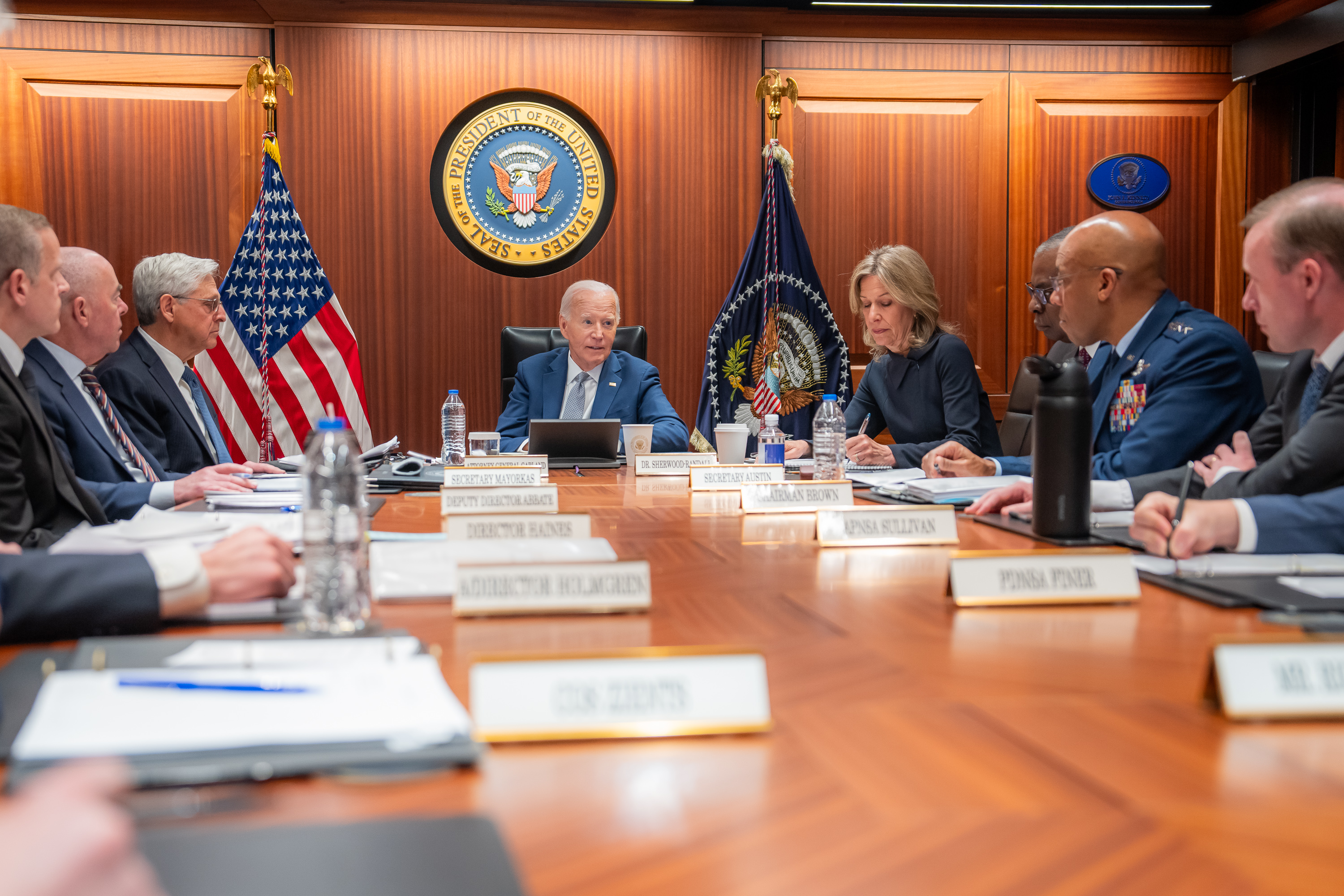 President Joe Biden receives a briefing from his national security team on the investigations into the terrorist attack in New Orleans and vehicle explosion in Las Vegas.