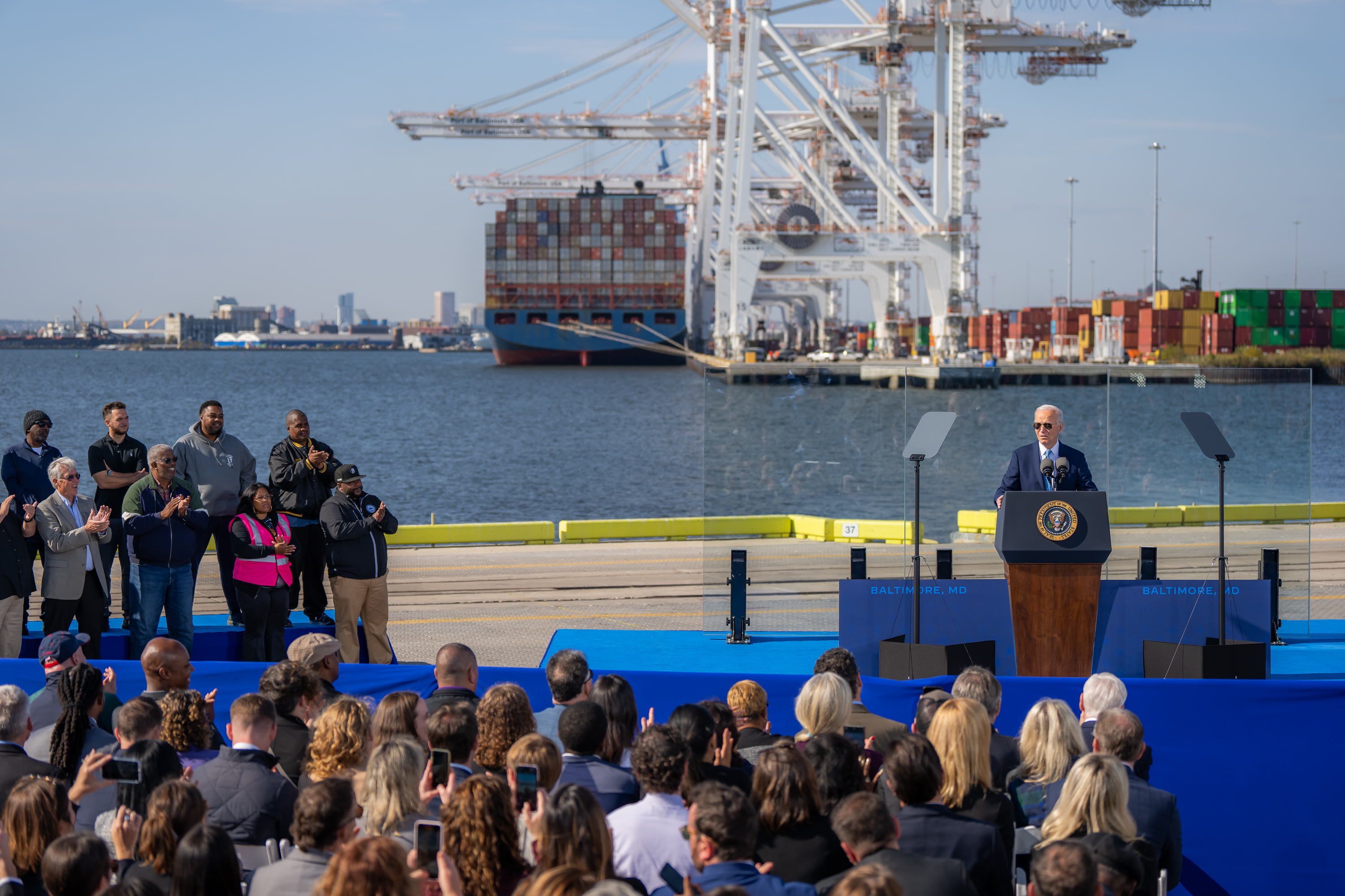 President Joe Biden announces his administration is delivering $3 billion in funding from the Inflation Reduction Act to help clean up and modernize ports in 27 states and territories.