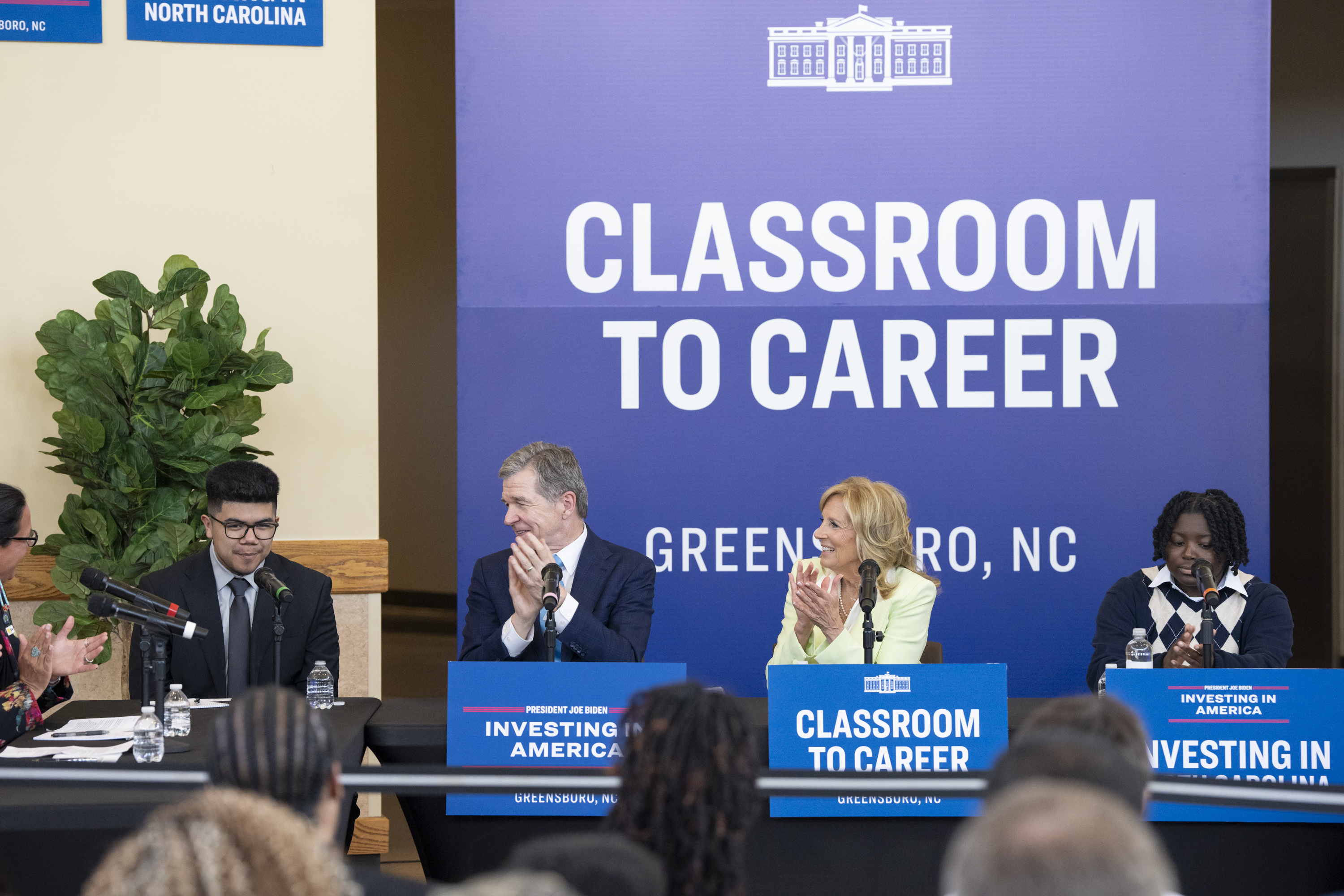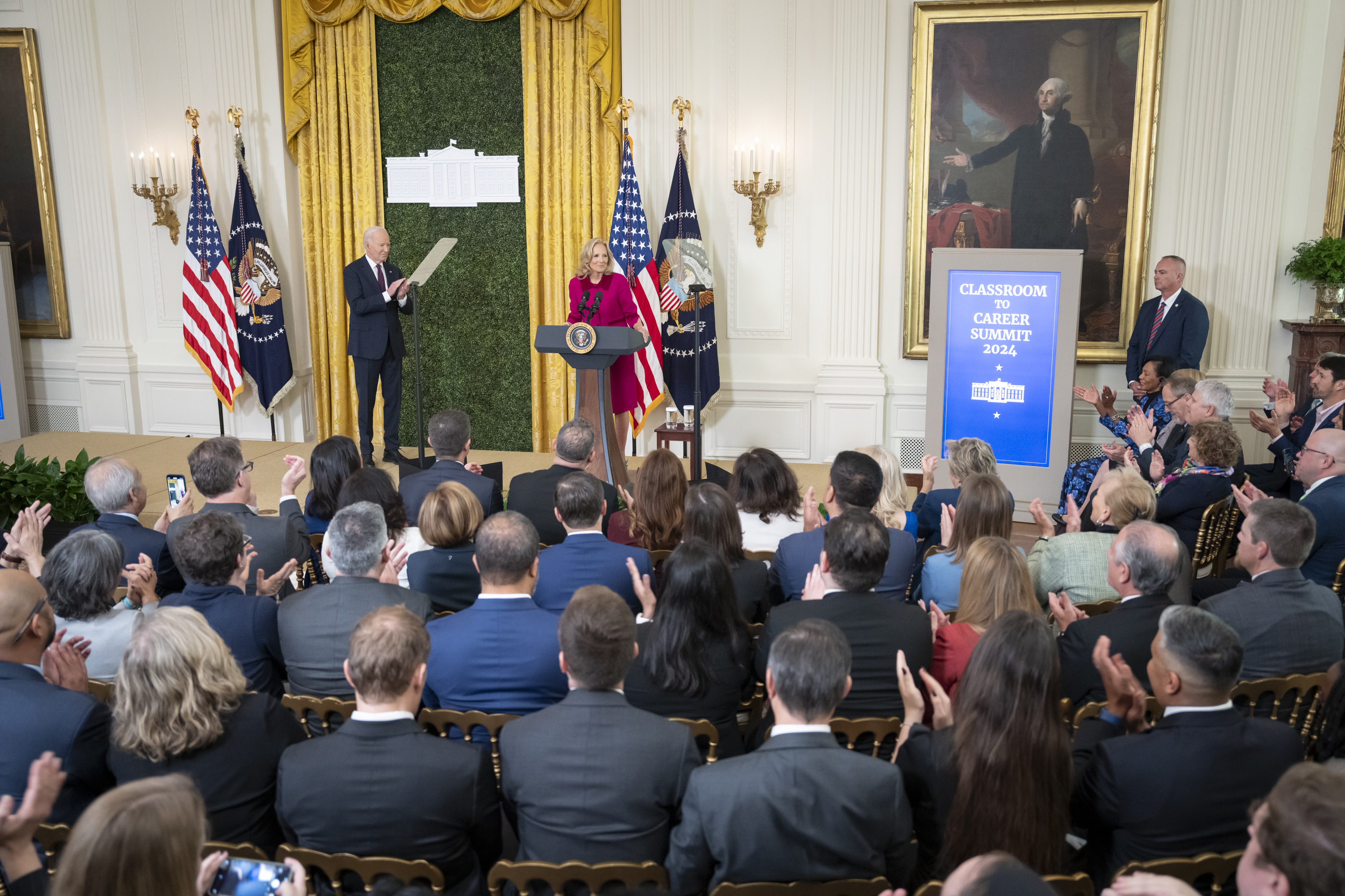 President Joe Biden and First Lady Jill Biden host the “Classroom to Career” Summit to highlight record progress to expand career pathways to these good-paying jobs in infrastructure, clean energy, advanced manufacturing, and more.
