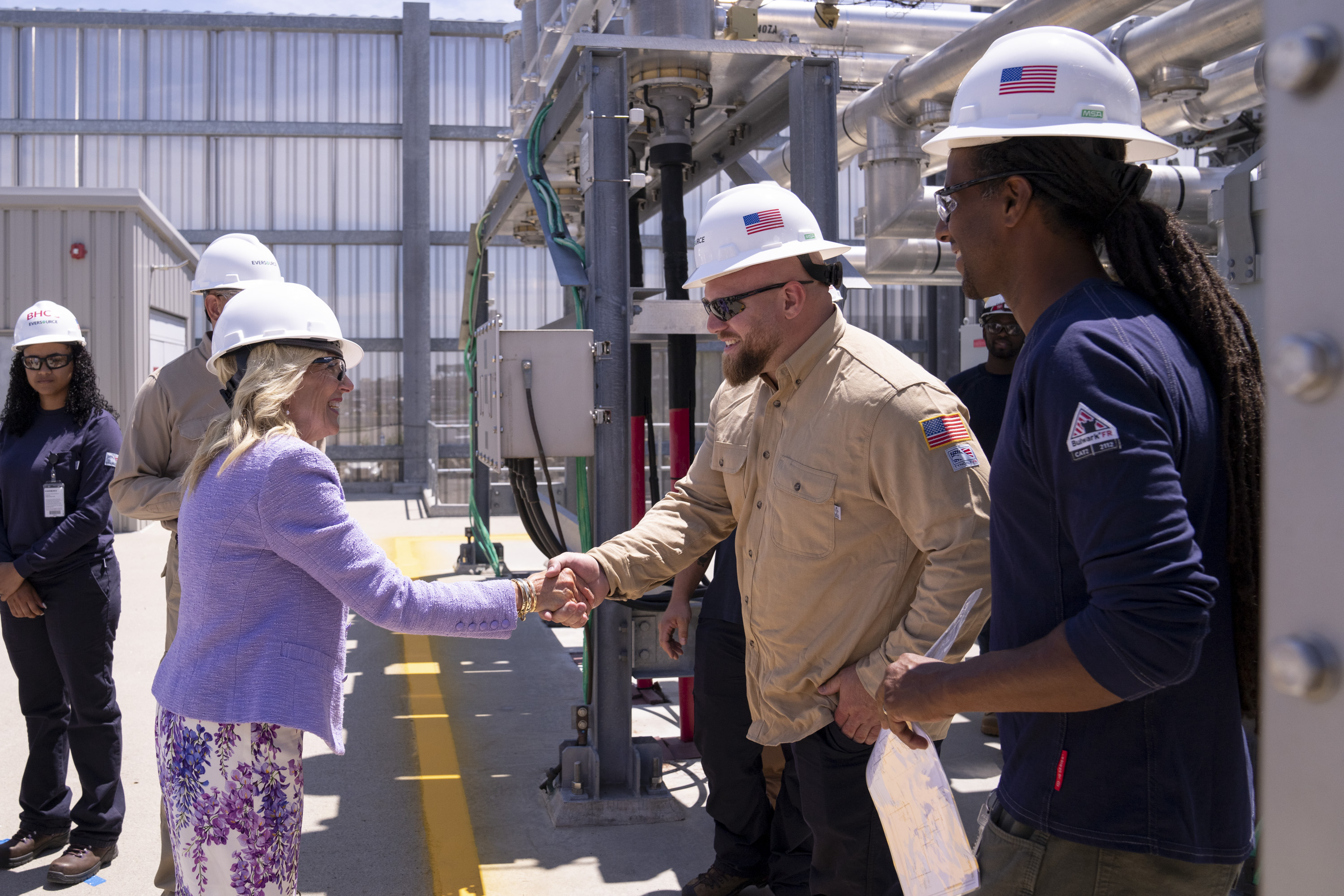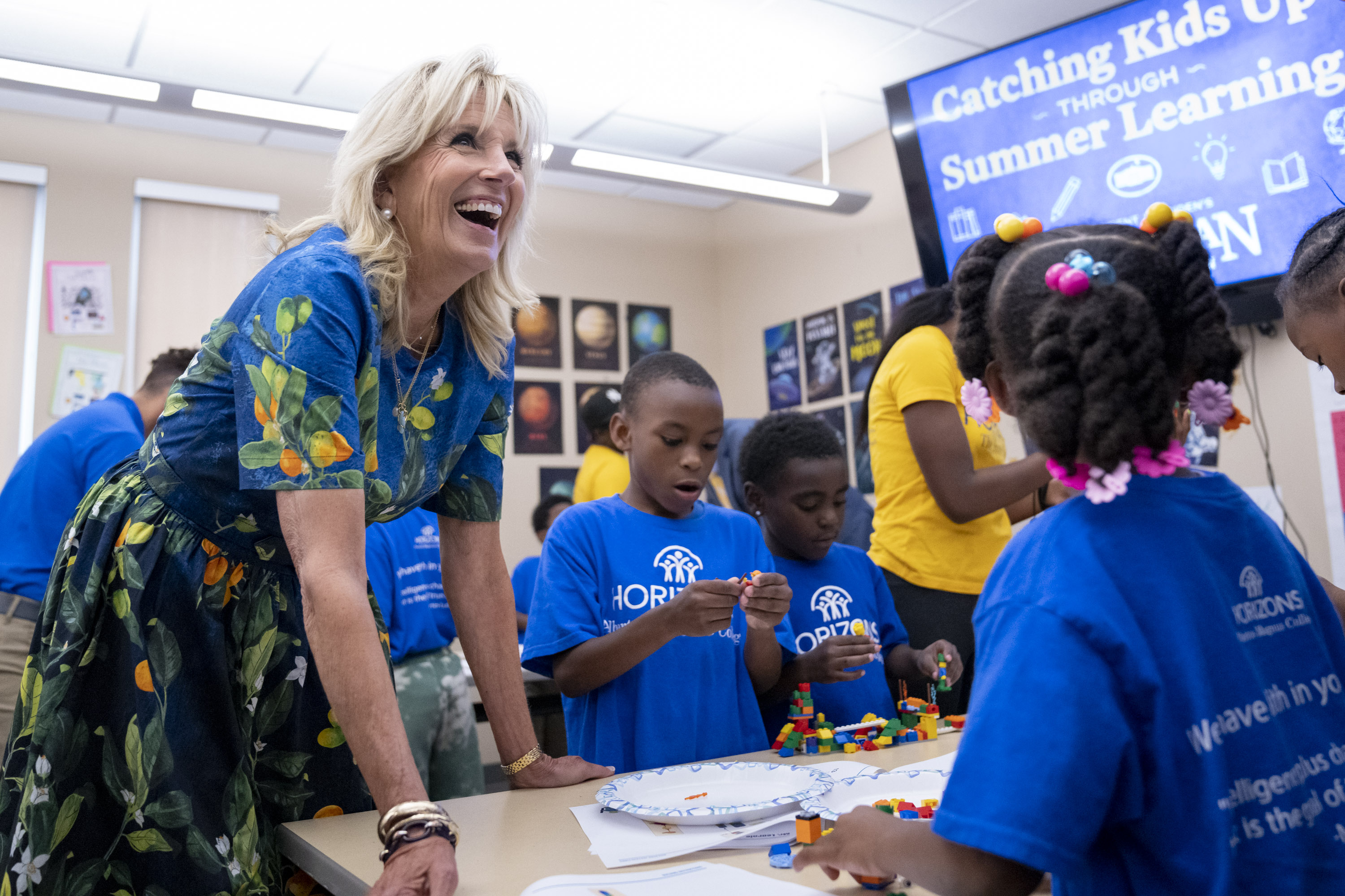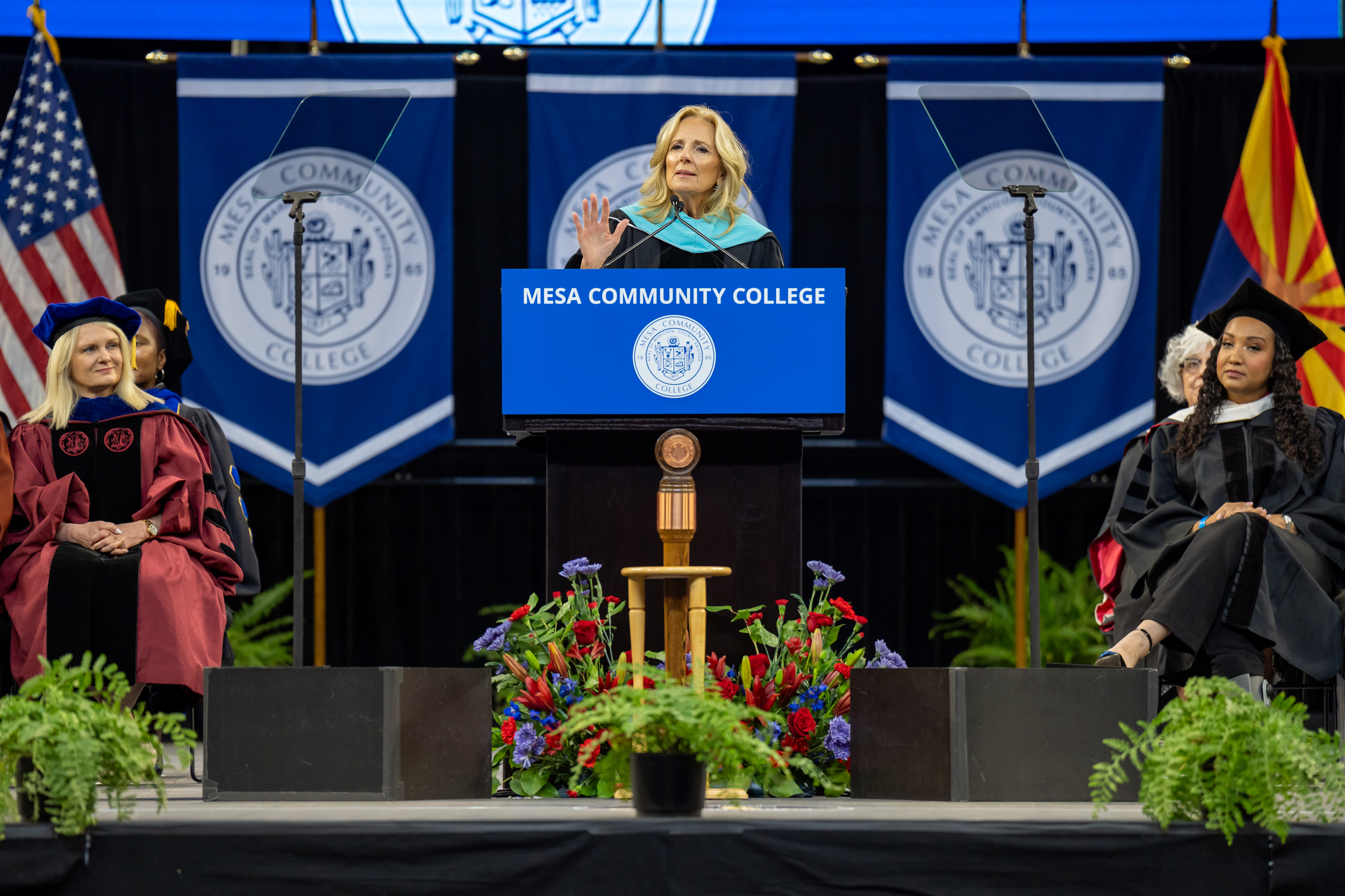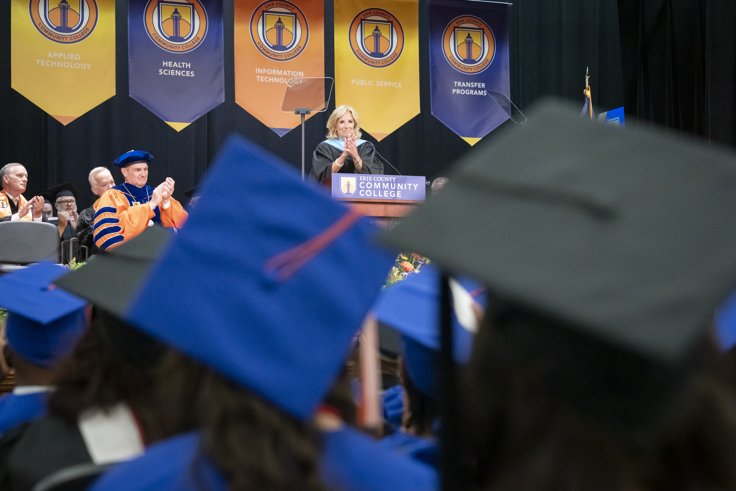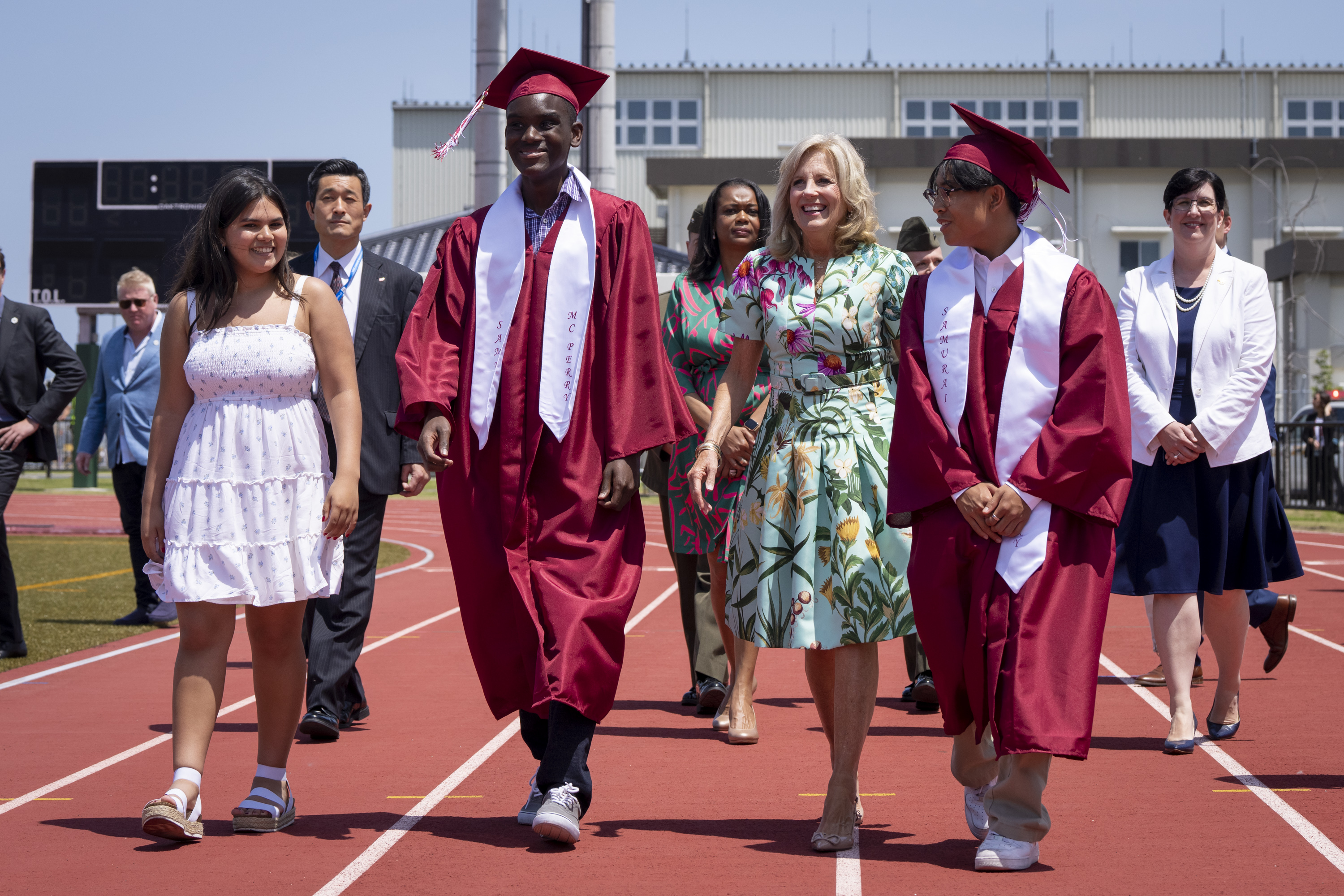 First Lady Jill Biden and Secretary Miguel Cardona visit Sauk Valley Community College in Dixon, Illinois to highlight affordable, accessible community college programs.