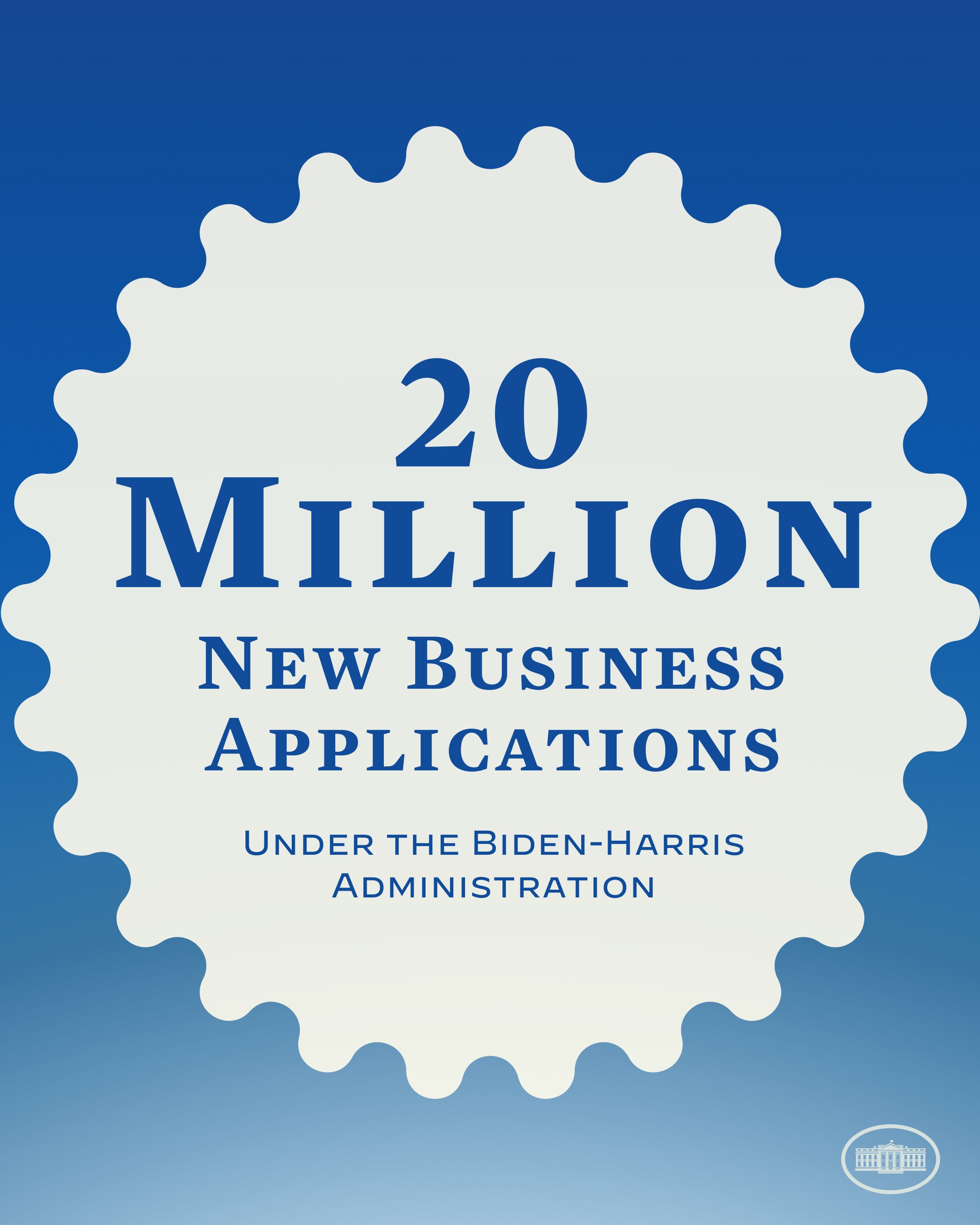 The Biden-Harris Administration is powering a small business boom, with a record 20 million new business applications filed since President Biden took office.