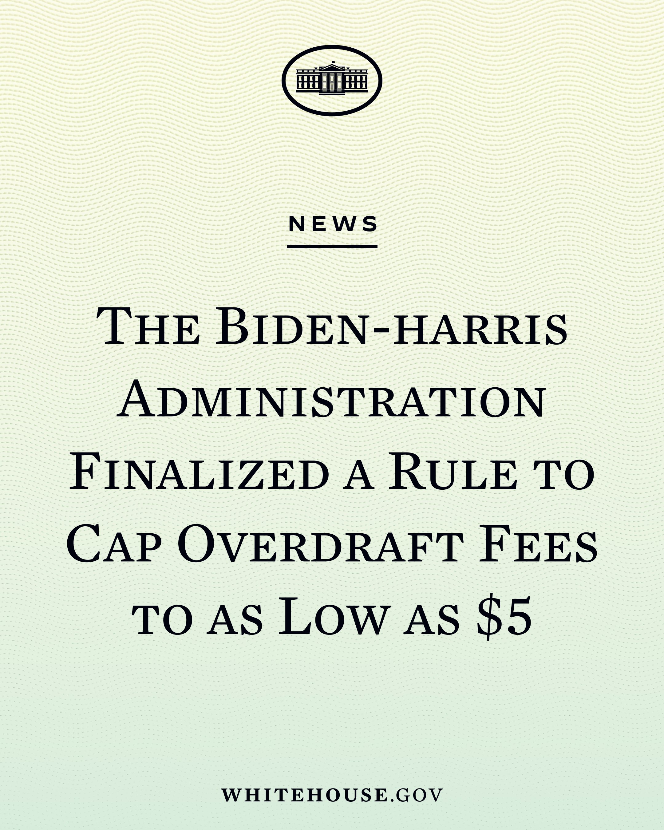 The Biden-Harris Administration finalized a rule to cap overdraft fees to as low as $5.